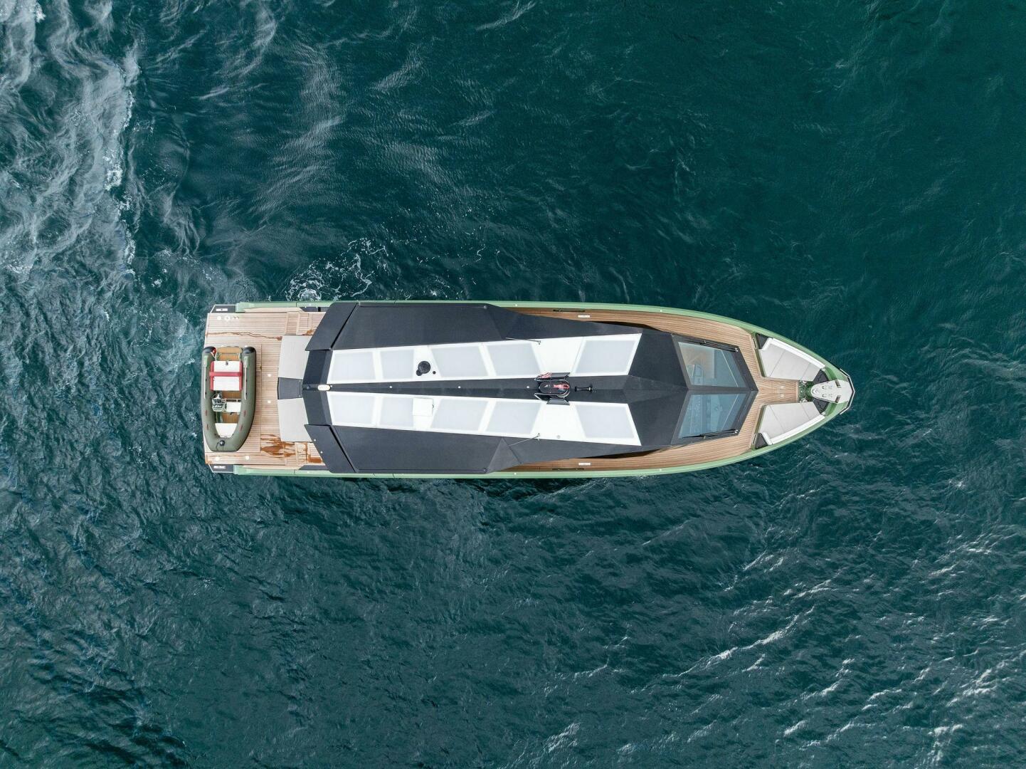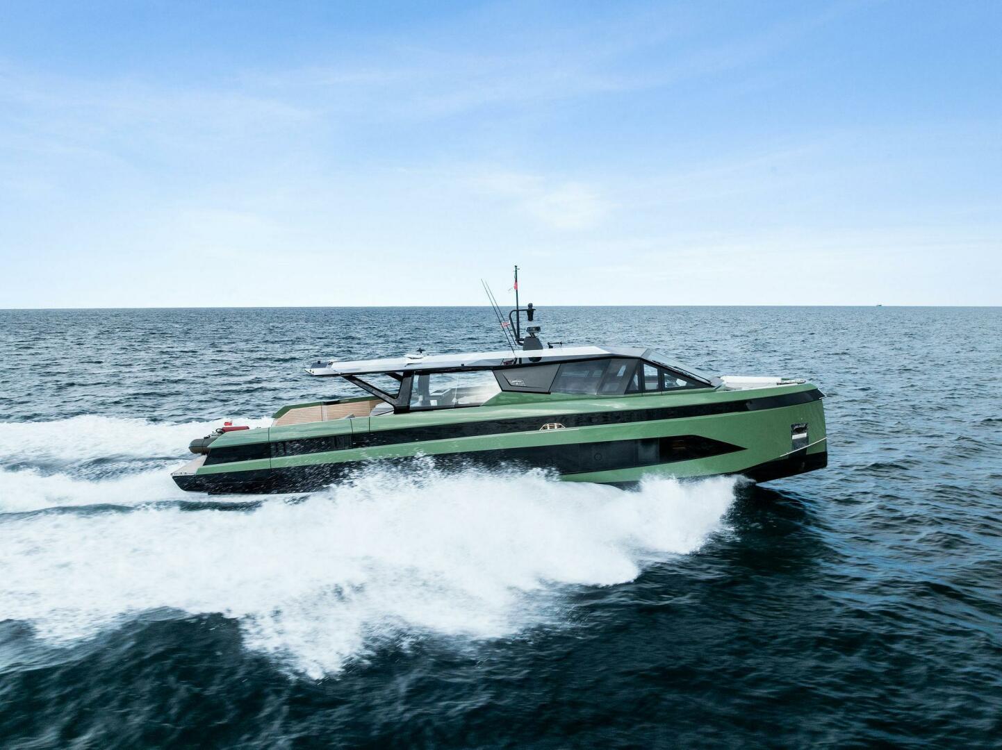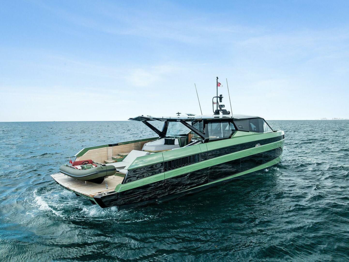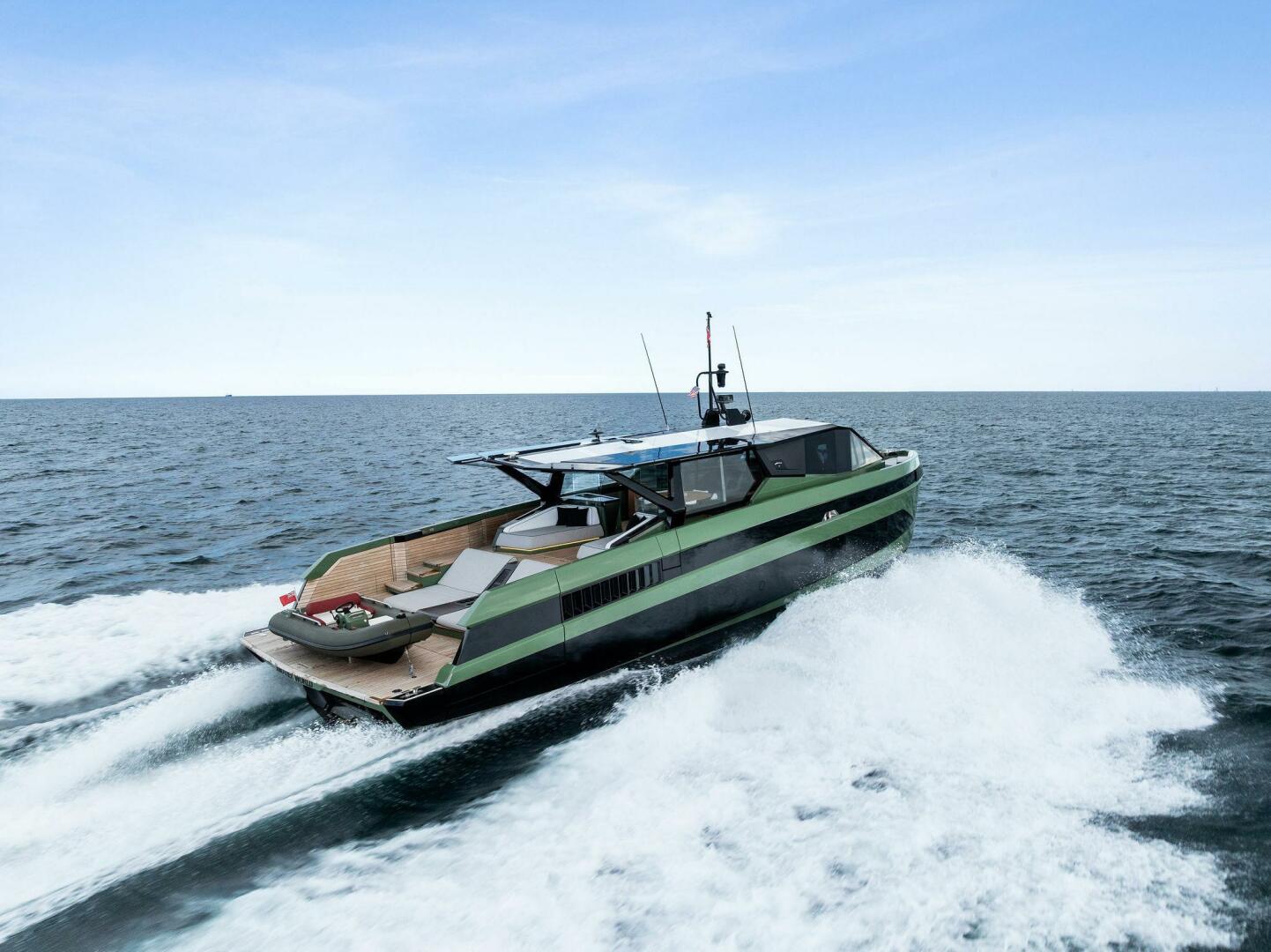 - Built as a crossover yacht, it merges the sleekness of a coupe boat with the volumetric benefits of larger yachts.