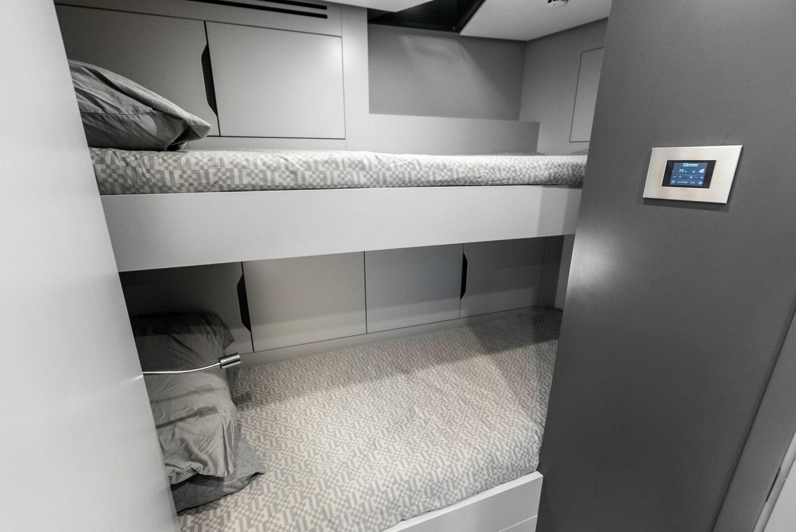 - Two additional guest cabins—a VIP double and a twin—each include their own en-suites and hull portholes.