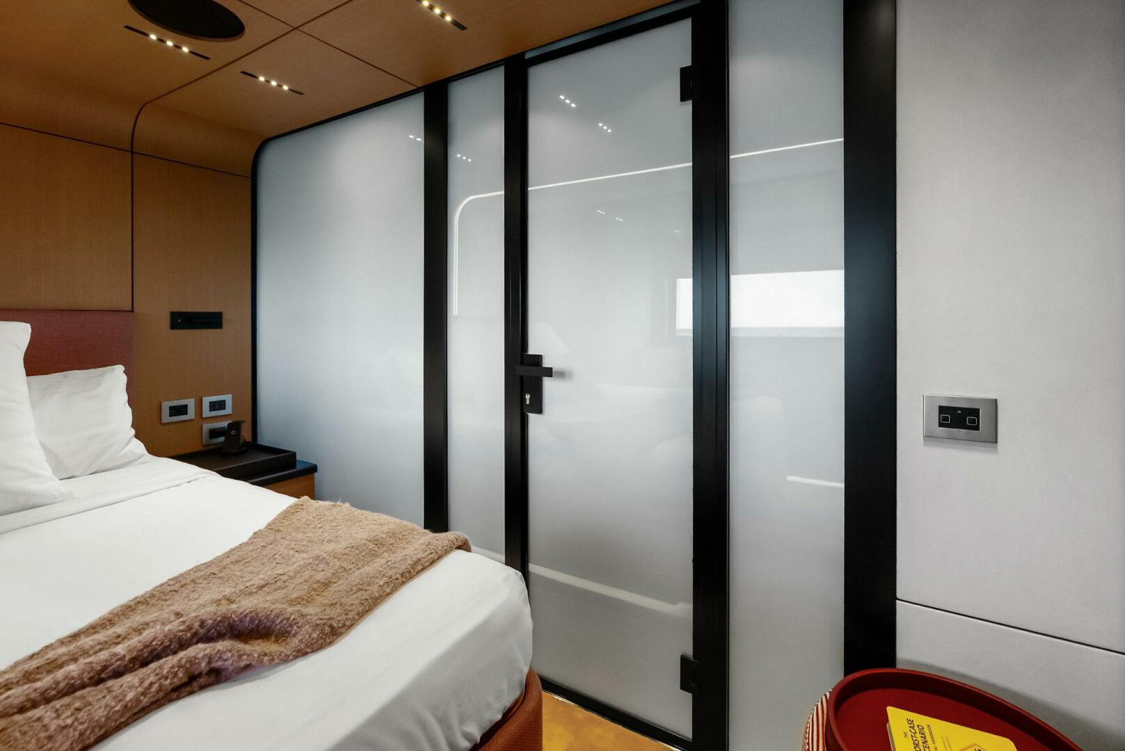- The foredeck includes a convertible lounge that can serve as an aperitivo spot or sunbathing area.