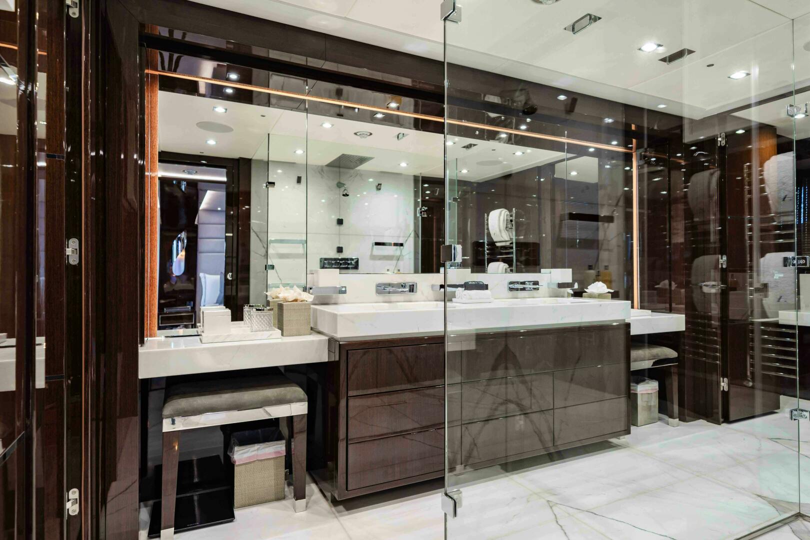 Lower Saloon: 60” retractable TV connected to the onboard entertainment system