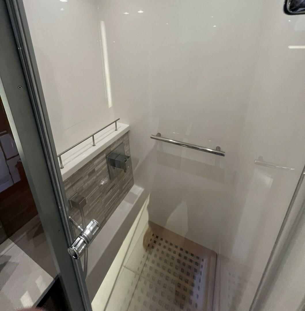 SEPARATE SHOWER AREA WITH SEAT AND ACRYLIC DOOR