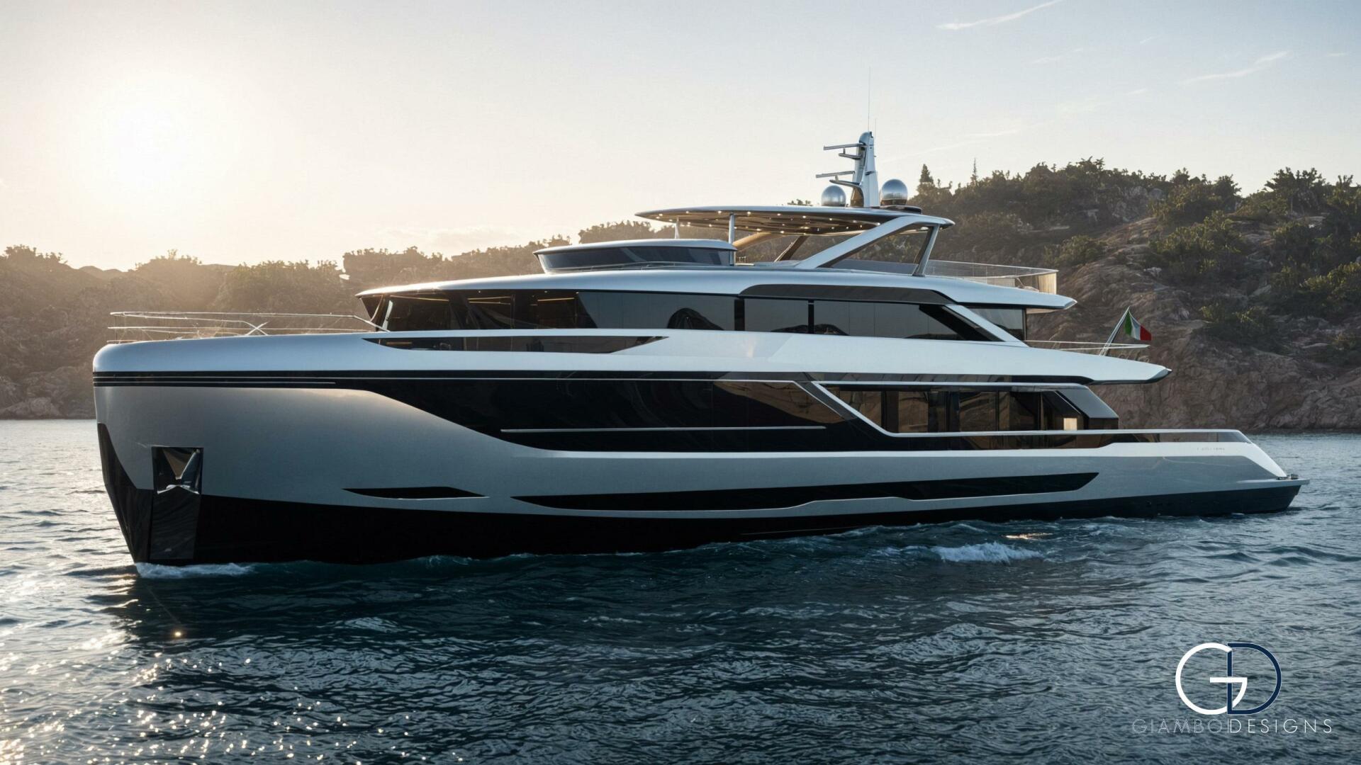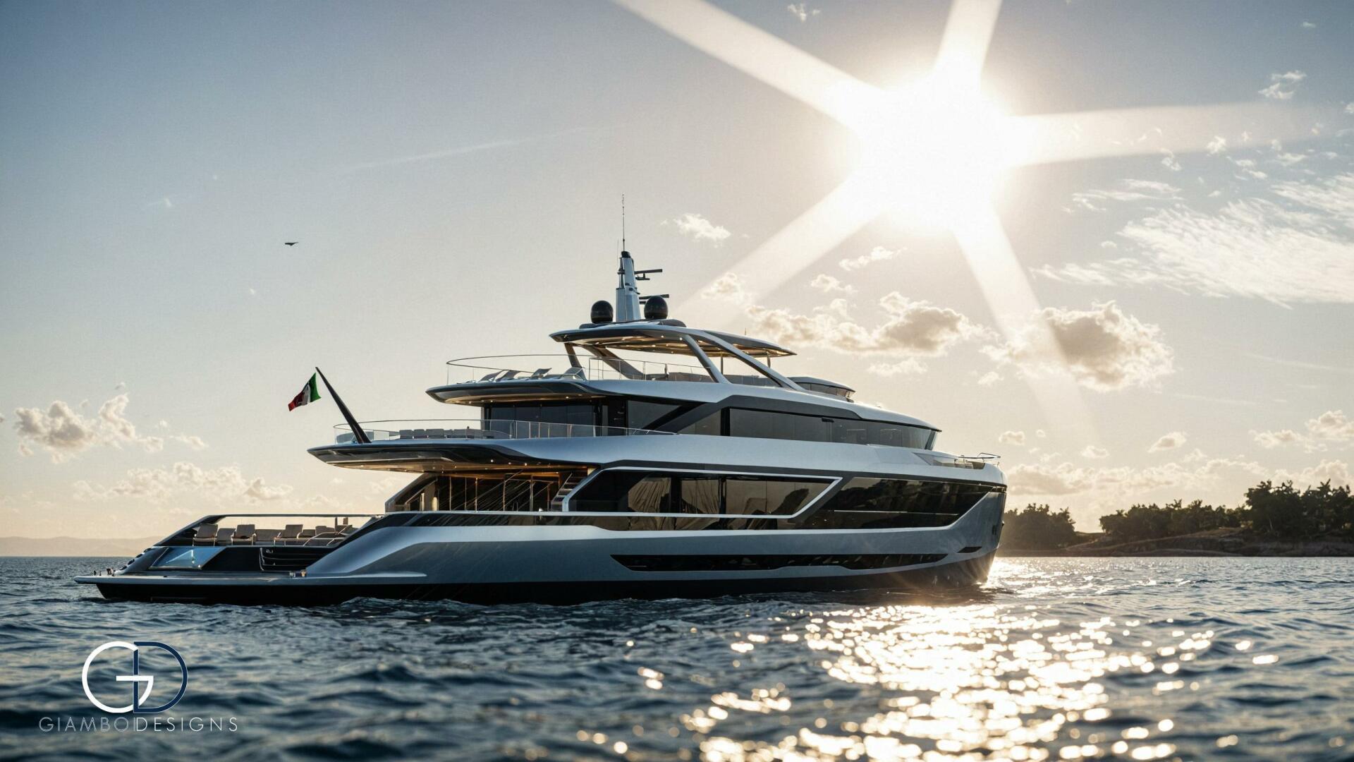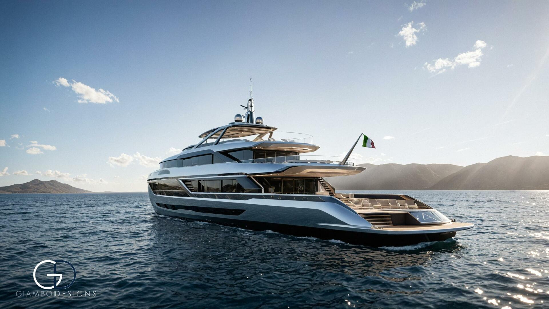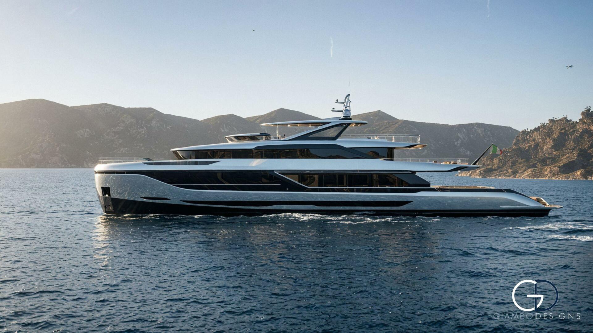 Her standout feature is a private master cabin on the forward upper deck with a full-glass facade that opens to a private pool, ensuring privacy while preserving the salon’s space. An asymmetrical main deck boosts interior volume, while fold-down bulwarks create a floating terrace seamlessly connected to the salon.