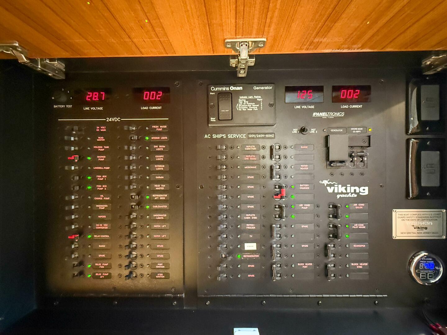 - Master electrical control panel located in galley