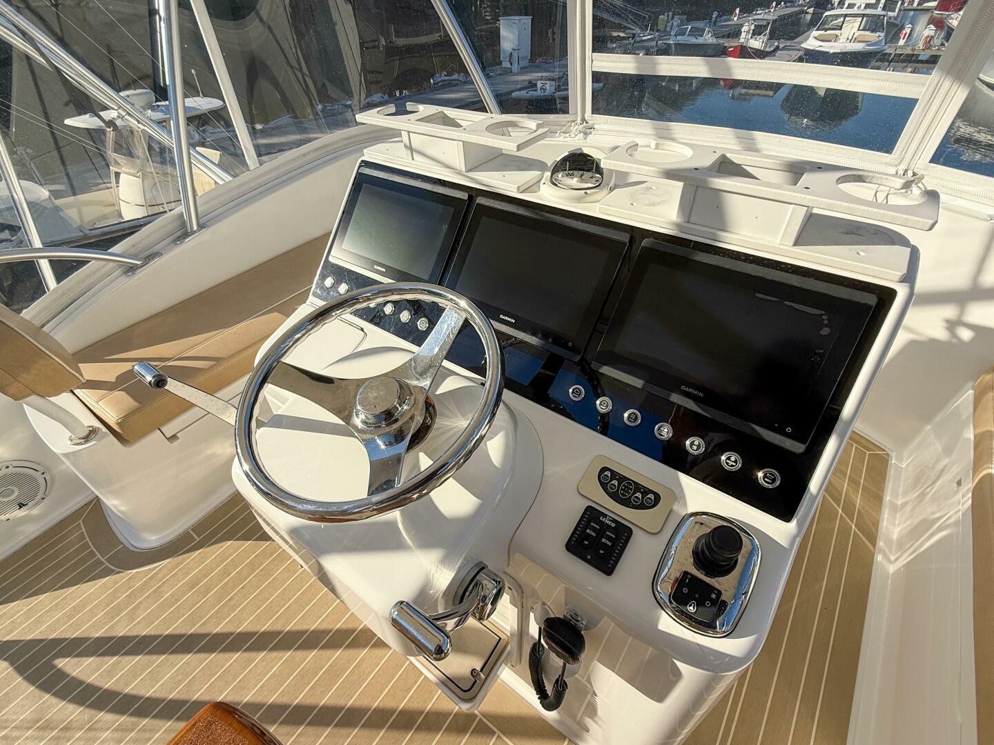- Custom Flybridge Helm Triple Screen flush-mounted with Bocatech switches