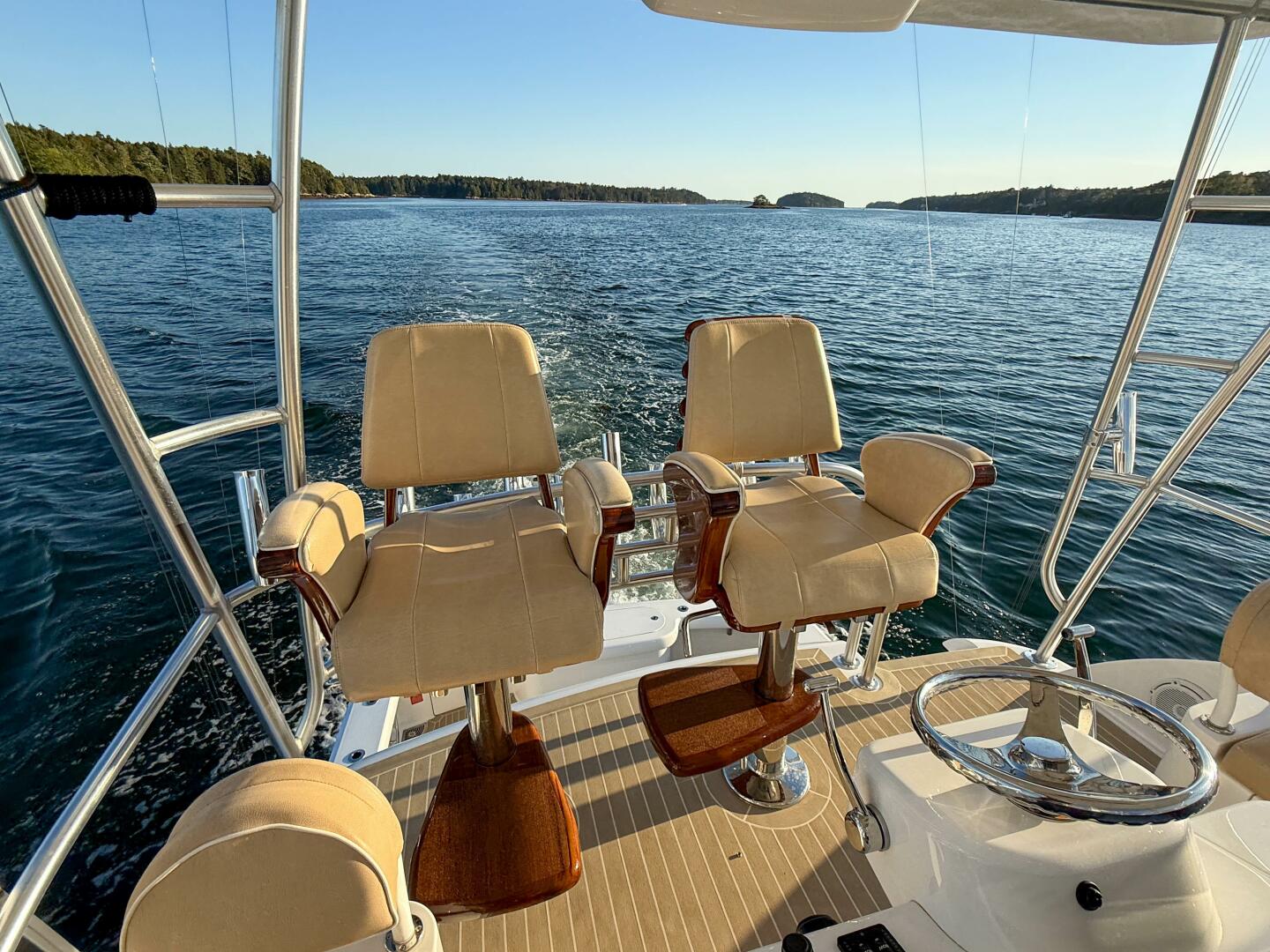 - Additional Release Marine helm chair on Flybridge (Teak ladderback w/ Ultraleather)