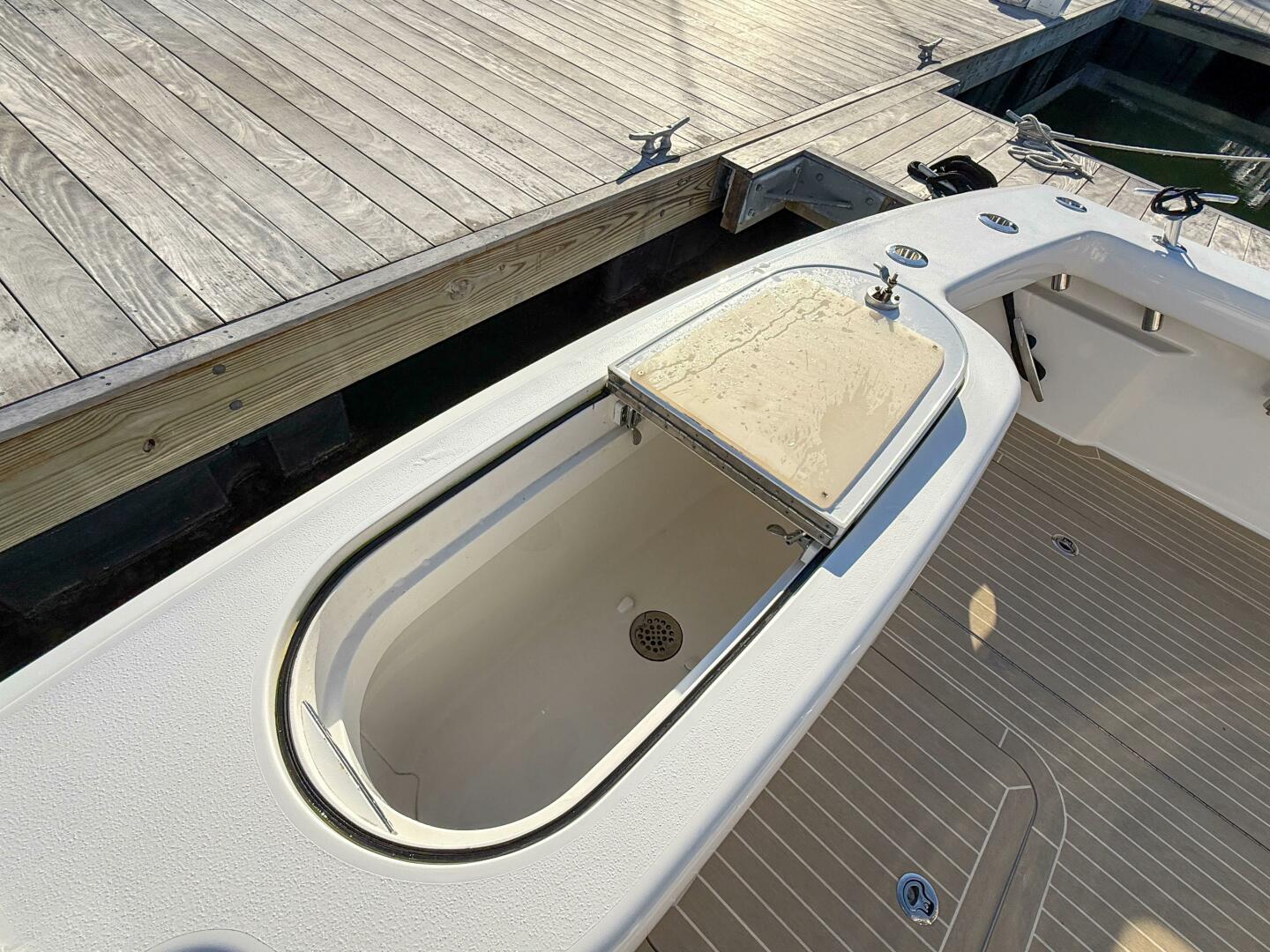 - In-deck insulated fishboxes port and starboard with automatic sump drains