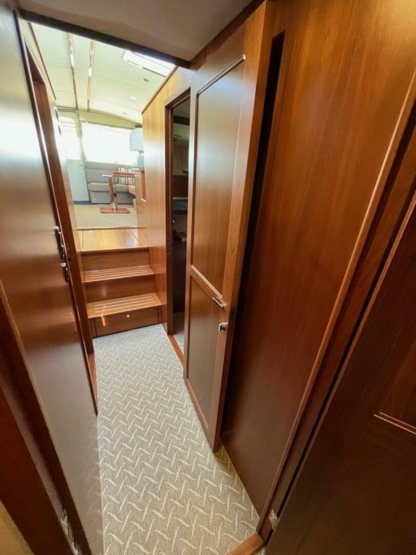 - Burmese teak interior including passageway bulkheads (specific to Australian built boats) with satin finish on all window frames and toe rail