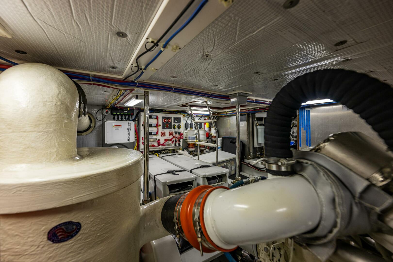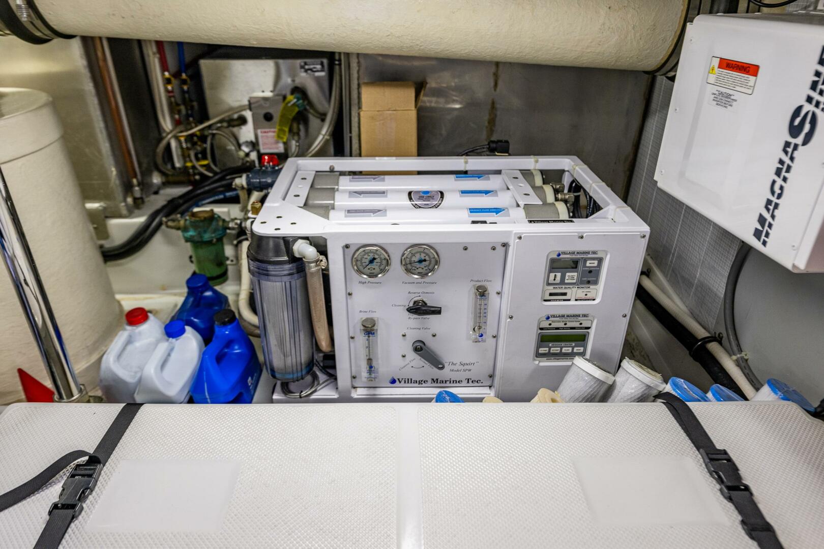 All the spaces are heated with an Espar diesel furnace, ducted throughout the boat. There are three additional 110-volt heaters all independently controlled for keeping her warm on the dock or in the off-season as well as an OceanAire reverse cycle unit in the master cabin and Pilothouse.