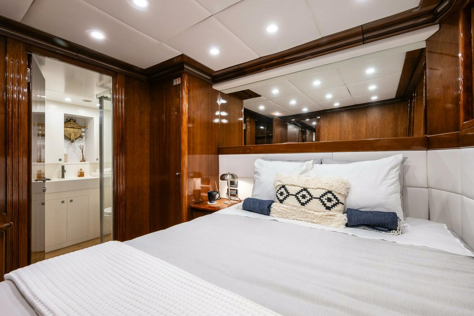Black Pepper offers a lot of exterior deck space with a spacious aft deck, walk-around side decks and an upper deck with sun awning, sunbathing area and mini-bar with grill. On the main deck there is a saloon area which has been completely restyled under current ownership and forward there is the owner’s stateroom with full exterior views. The interior is finished in mat varnished wood.