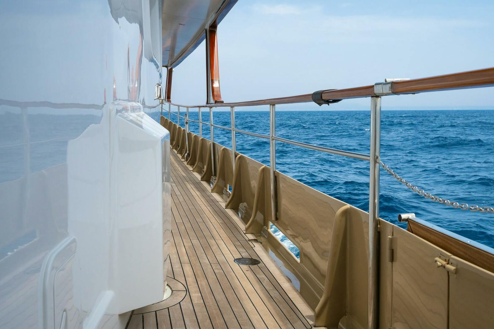 - New access from the main deck to the upper deck by means of a removable side ladder (sb side) and a solid stainless-steel stair from the foredeck.