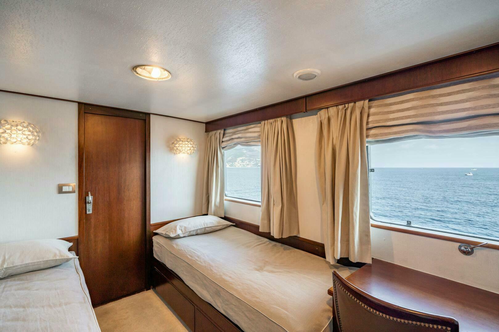 Up to 7 Crew can be accommodated in 3 bunk beds cabins. BLUEMAR II has always been professionally maintained, ensuring that every aspect of the yacht is in excellent condition. You can step aboard with confidence, knowing that every detail has been meticulously cared for.