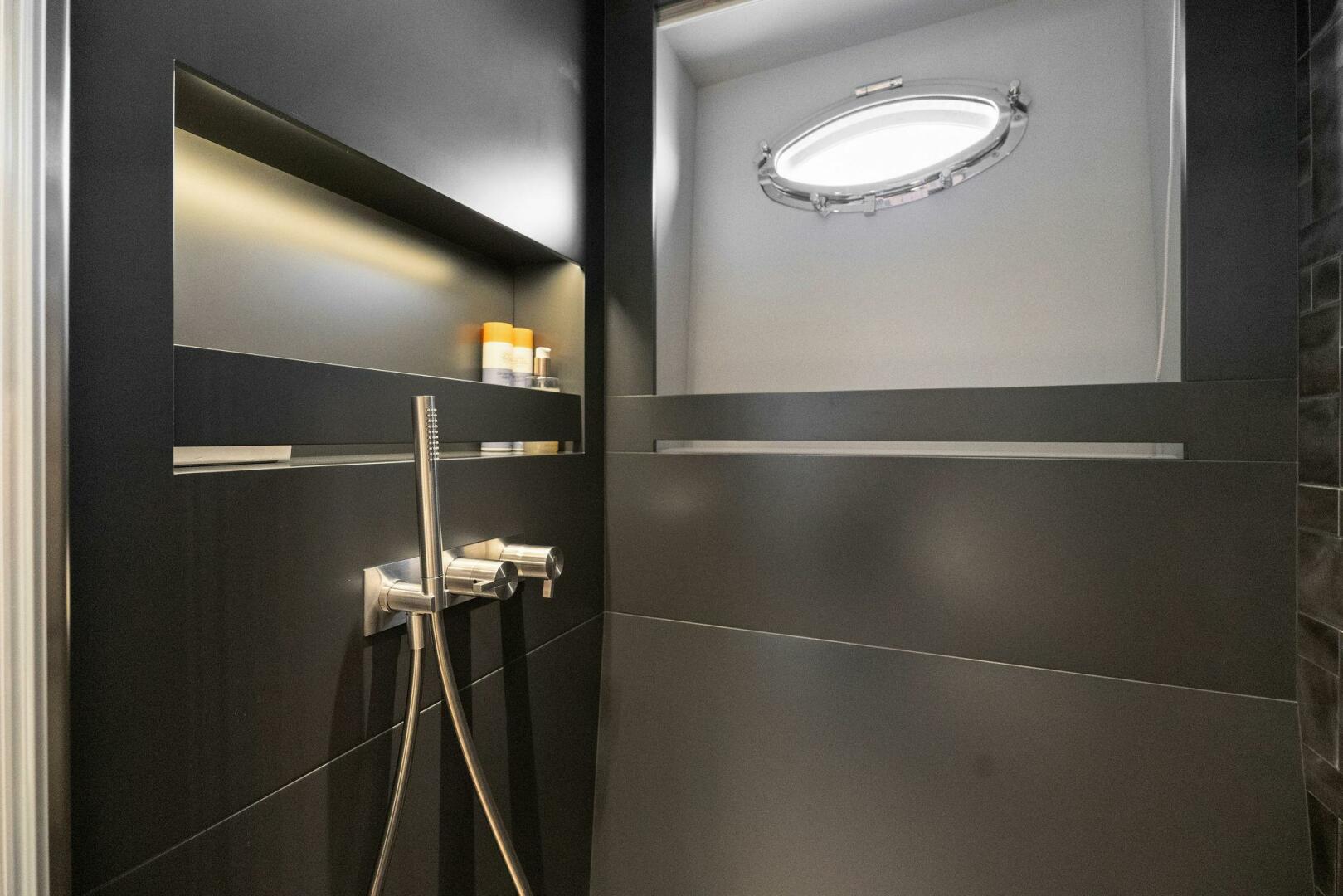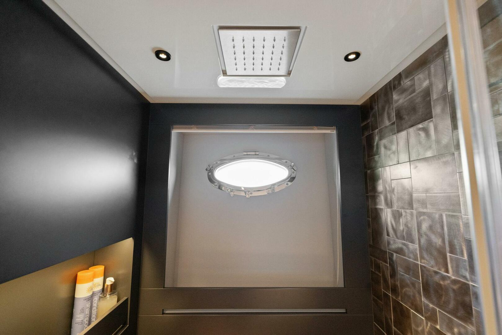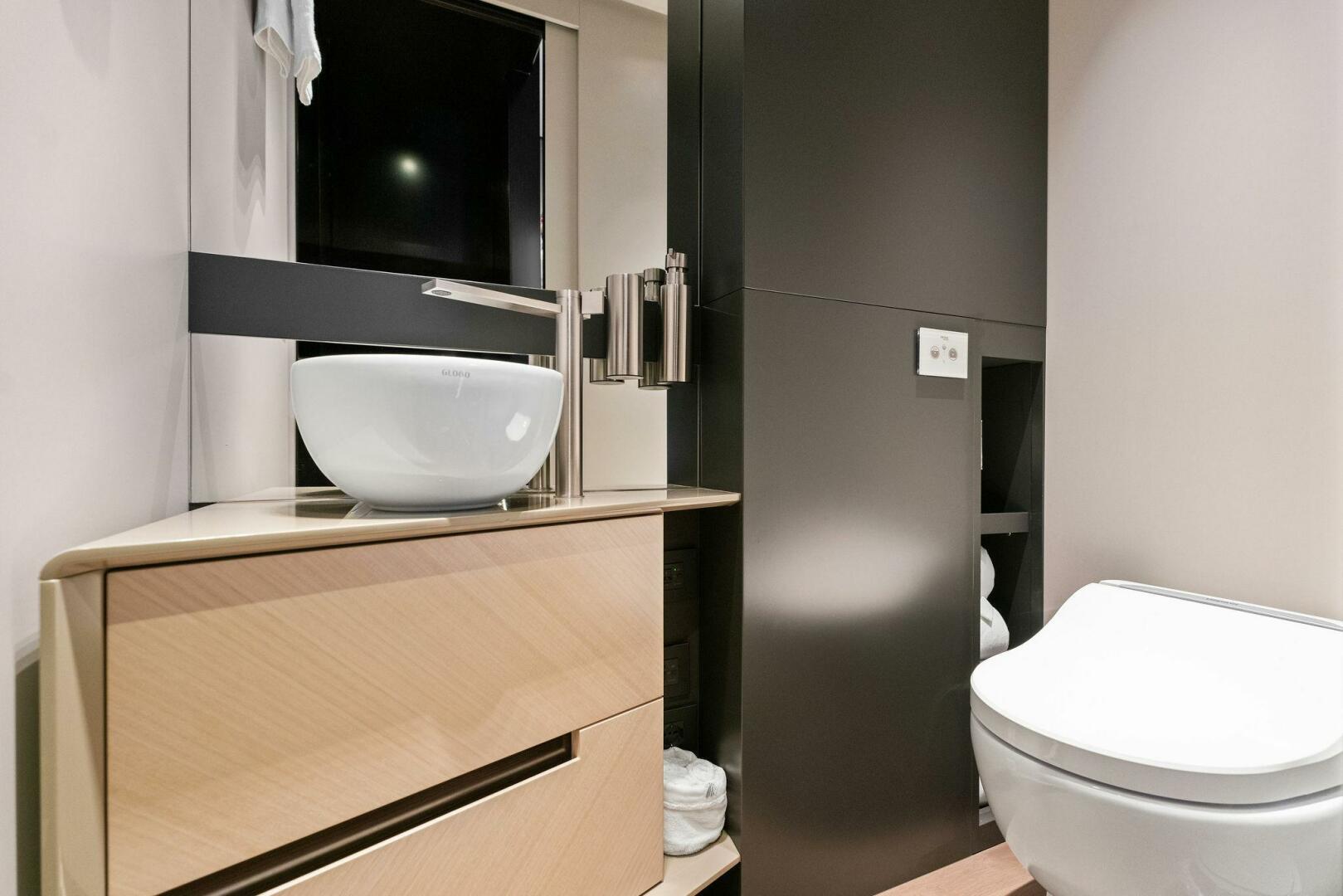 The ultimate expression of spaciousness, the sun deck on GTX116 hosts the external helm station, an elegant bar counter and a huge dining area with sun pad. Deployed from the hull side at the touch of a button, the lateral veranda enhances the open-air experience and the pure pleasure of the sea. Static elements animated by a sense of dynamism define a 360-degree outdoor walkaround path. The unprecedented new space carved out in the stern area. A beach area that hides a hangar containing a tender and a jet ski. A natural continuation of the Seascape, the spacious swim platform at the water’s edge offers an exclusive experience in close contact with the sea.