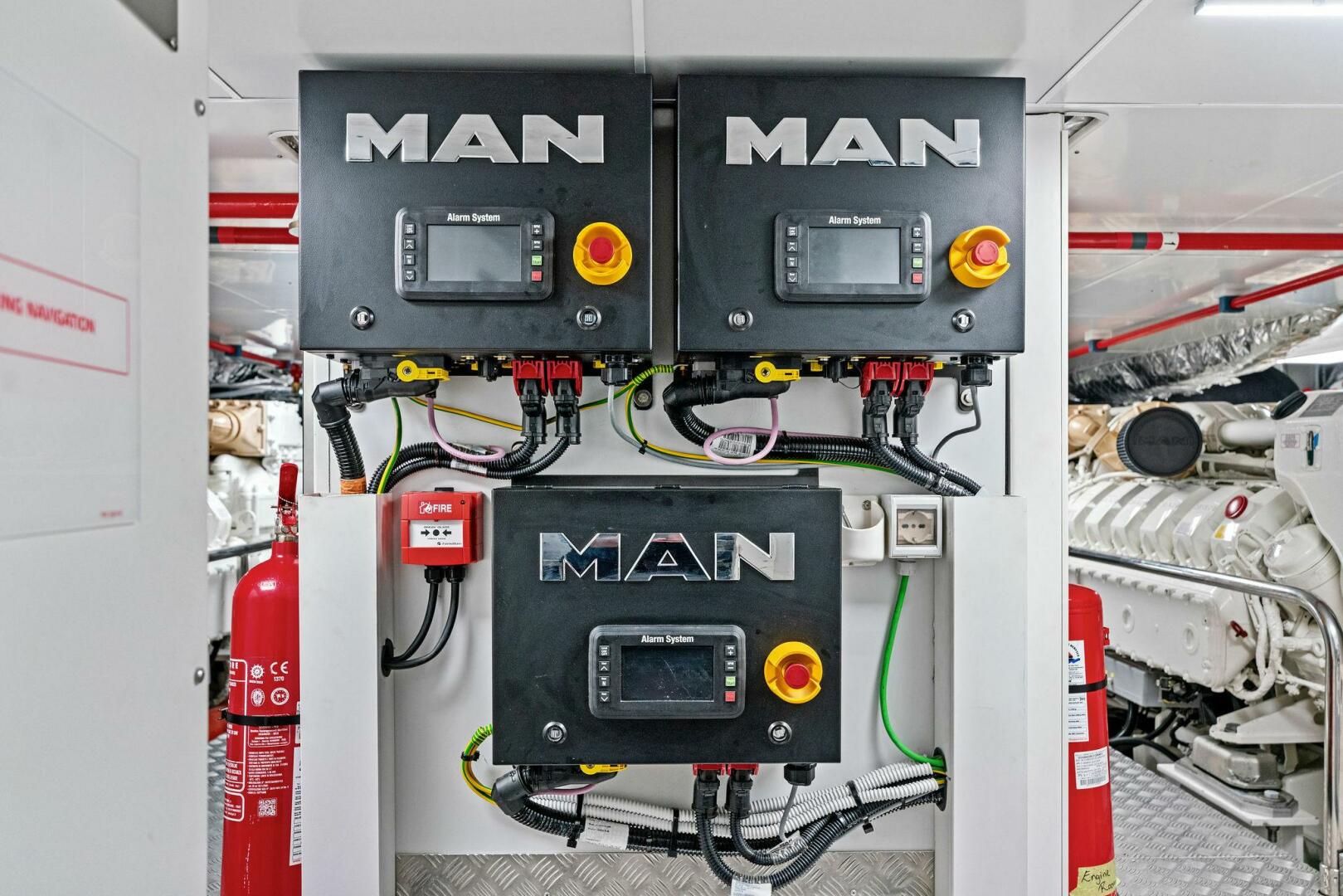 The thrill of speed and the pleasure of great power under control. The elegant dynamism of CAFFEINE springs from flawless synergy between three 2,000 HP MAN V12 engines, Kamewa waterjets and cutting-edge Pershing technology.