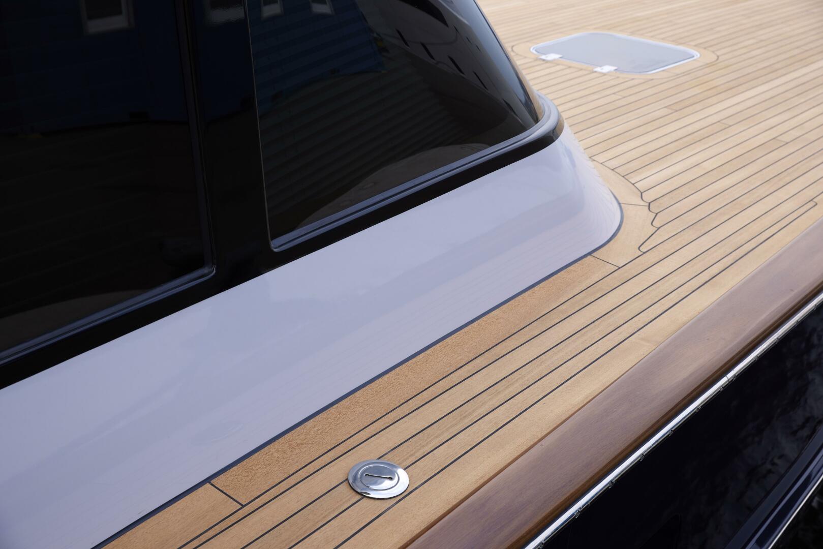 • Flush-mounted screws and mounts for dinghy storage on the foredeck