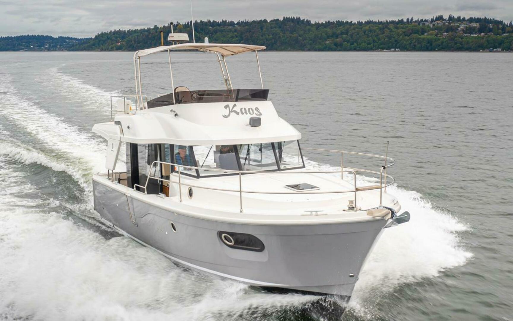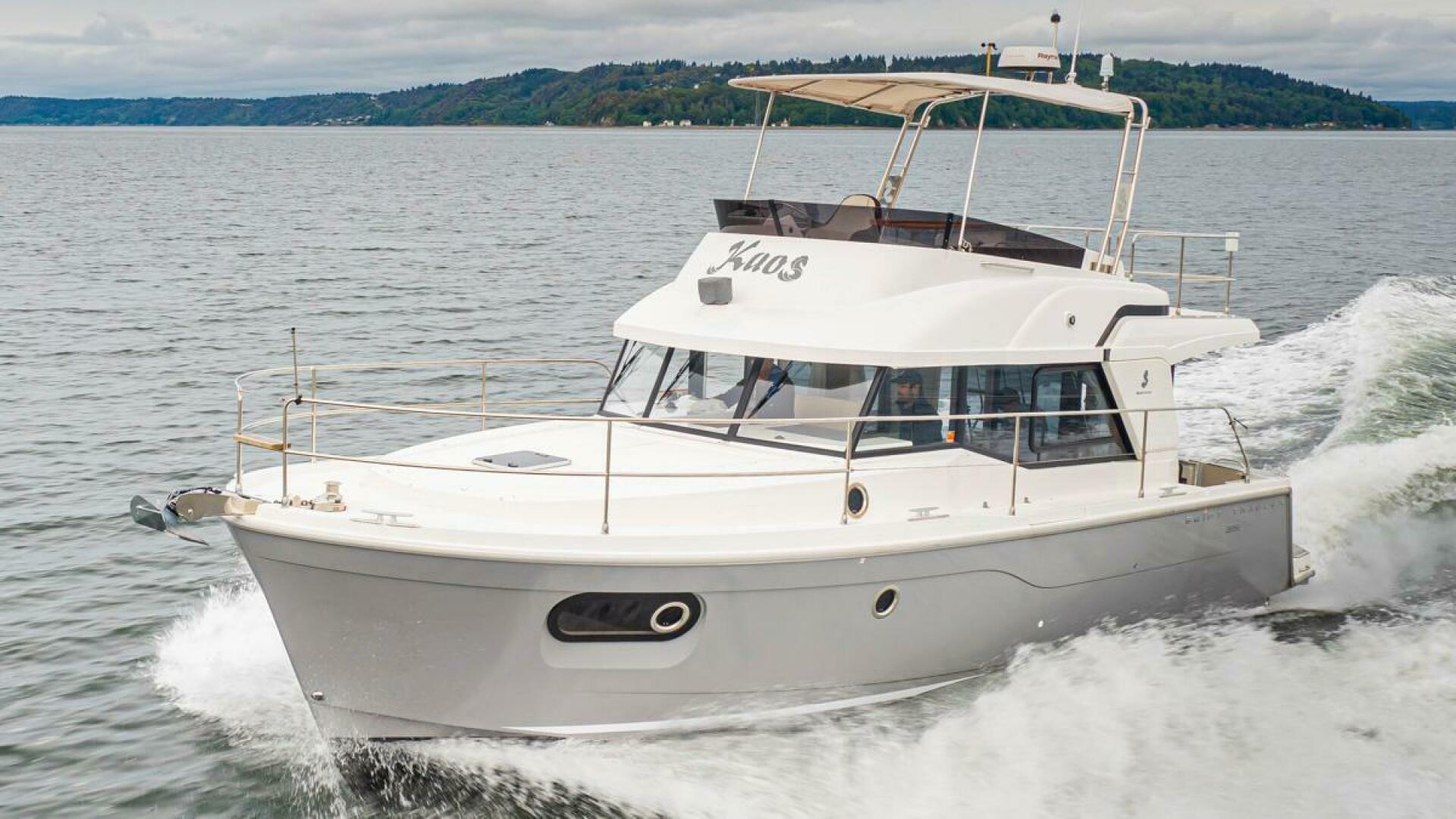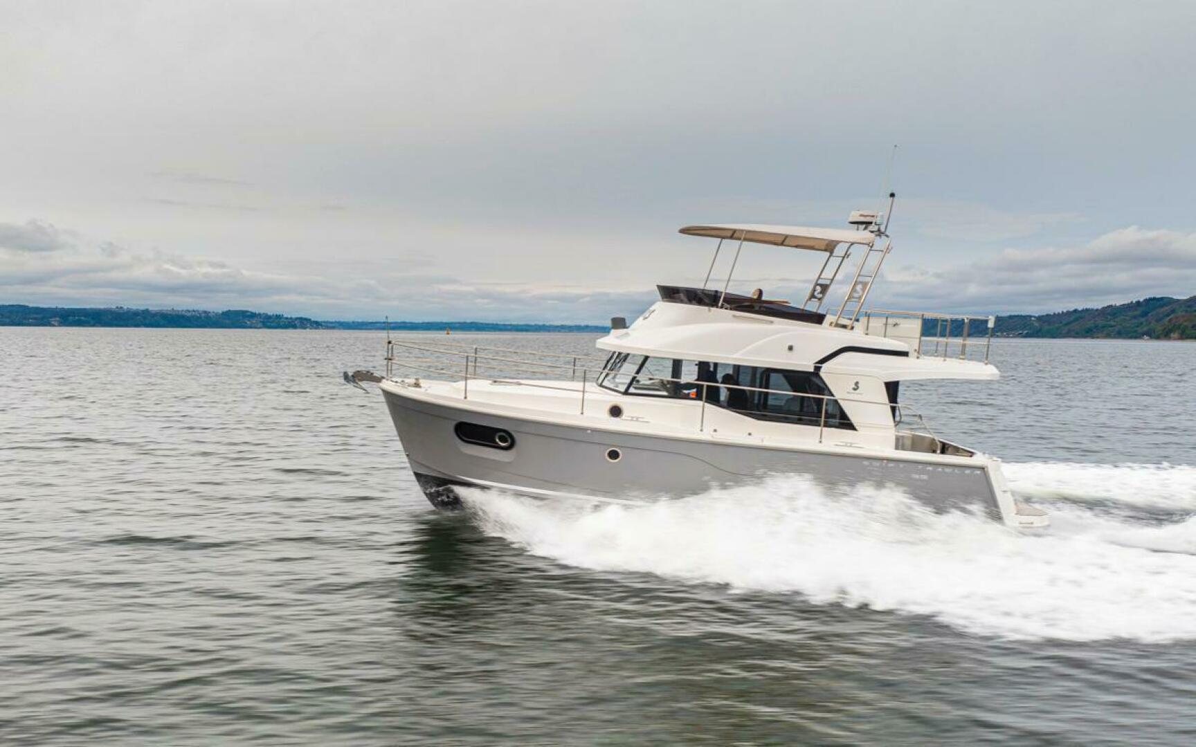 The Swift Trawler 35 has strong harmonious lines making you feel reassuringly safe, and this quality is repeated in the design and fit out choices. Built on a semi-planing hull developed through the expertise of Beneteau Power, the Swift Trawler 35 has a Cummins 425 hp engine, and together they procure pleasure underway and offer easy maneuvering. Protected by a fixed Bimini, the Swift Trawler 35's flybridge has a comfortable living space with a sea view.