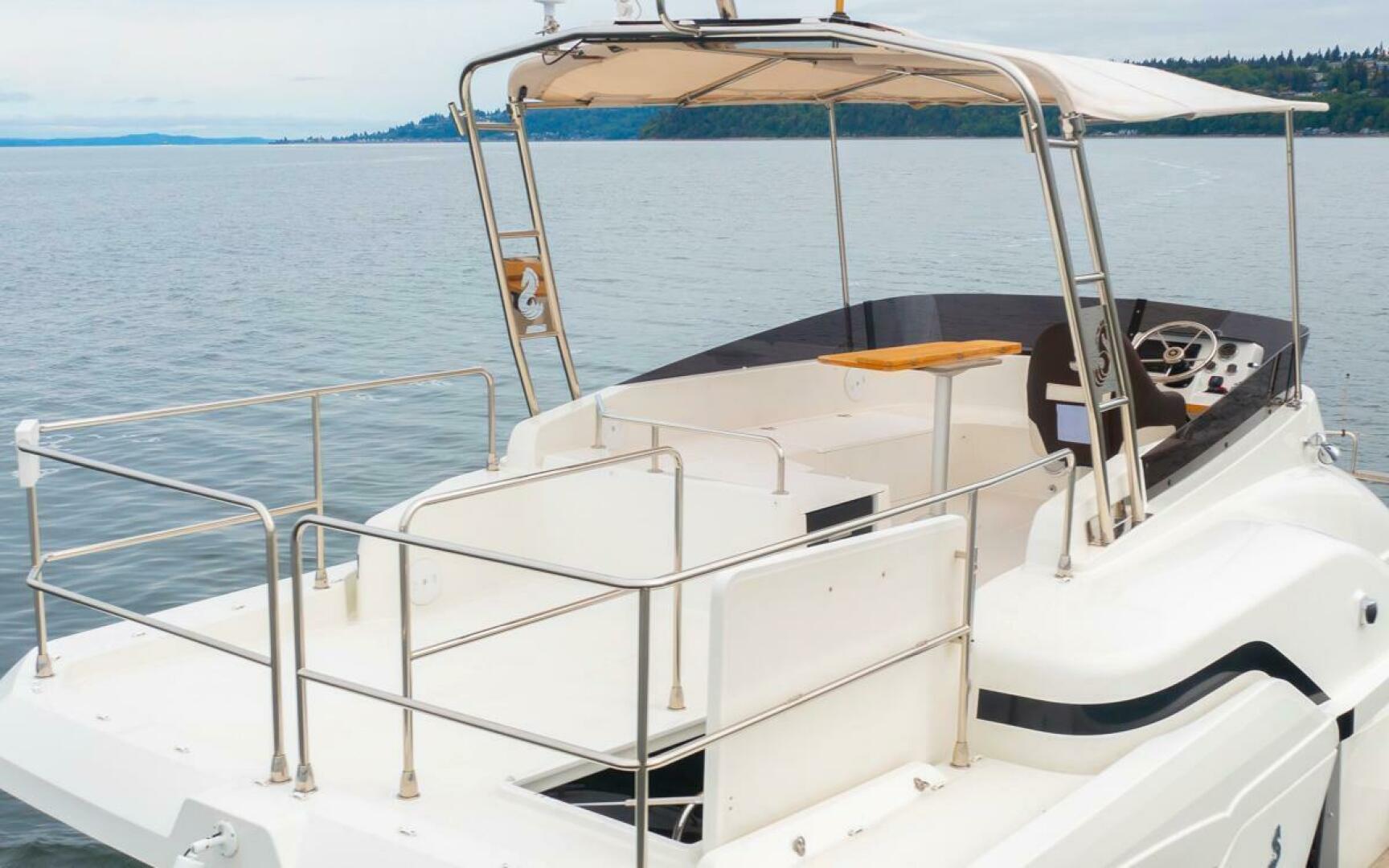 - Stainless steel pulpit surrounding aft of flybridge