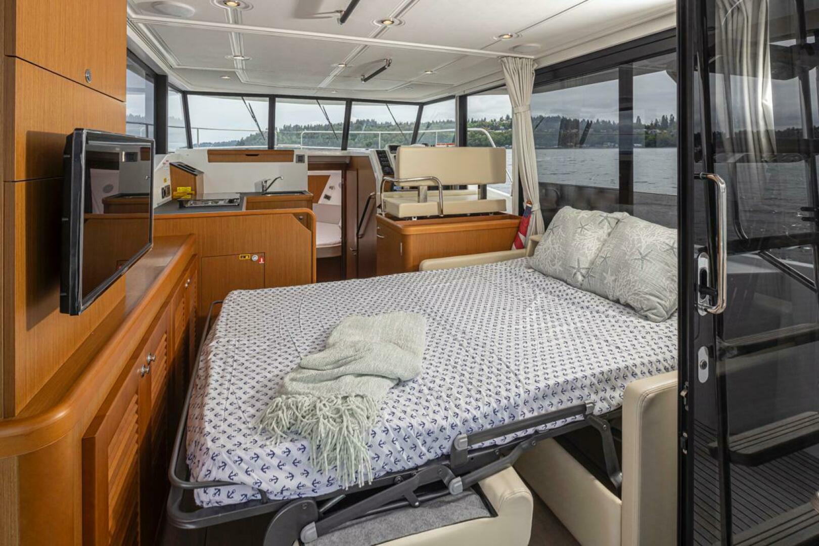- Queen berth flanked by reading lights either side and USB and standard power outlets