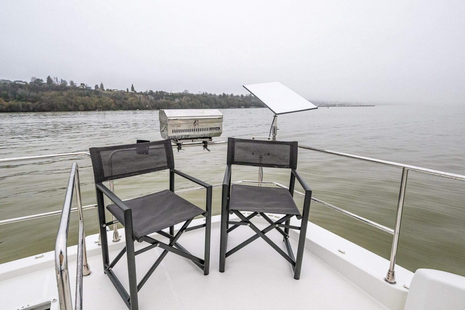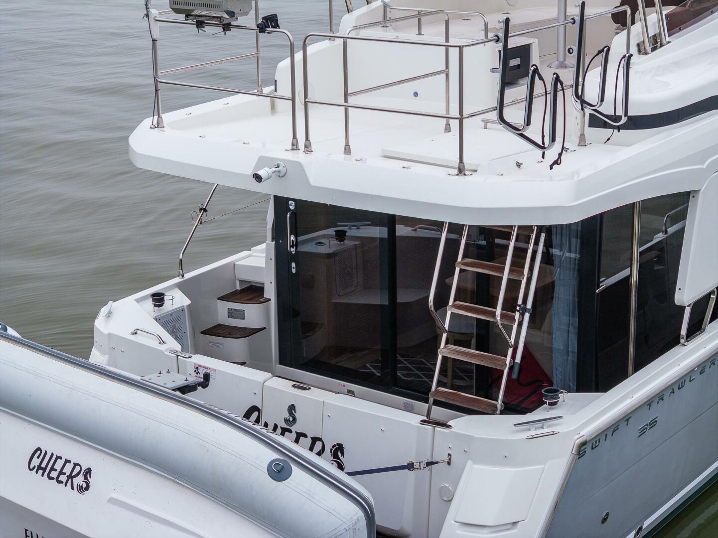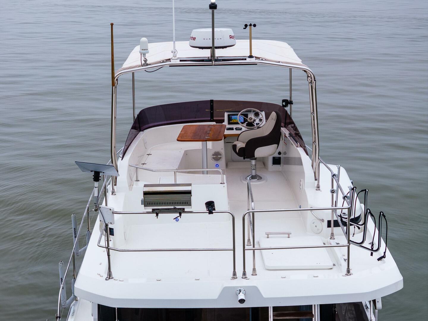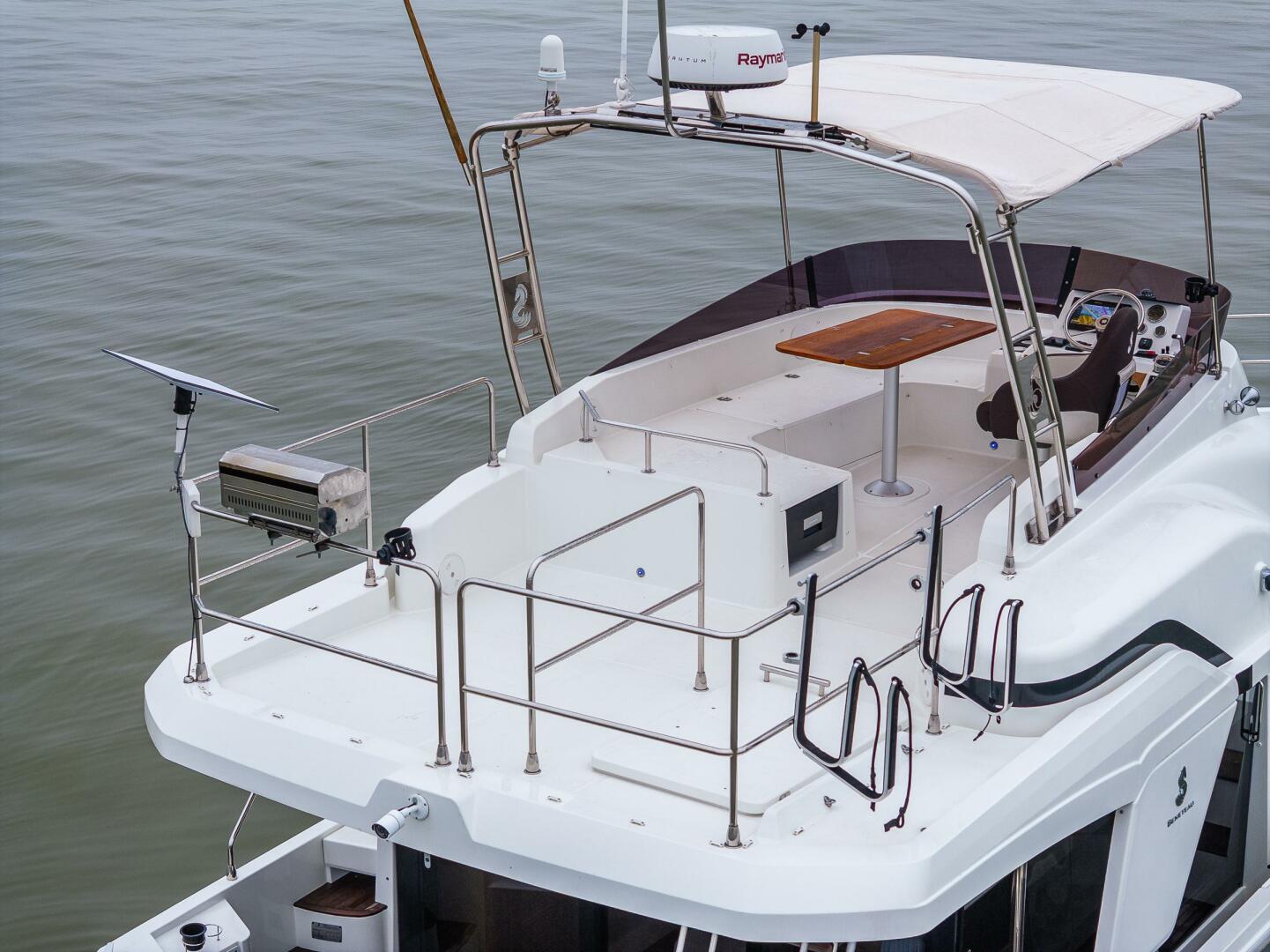 - Stainless steel pulpit surrounding aft of flybridge