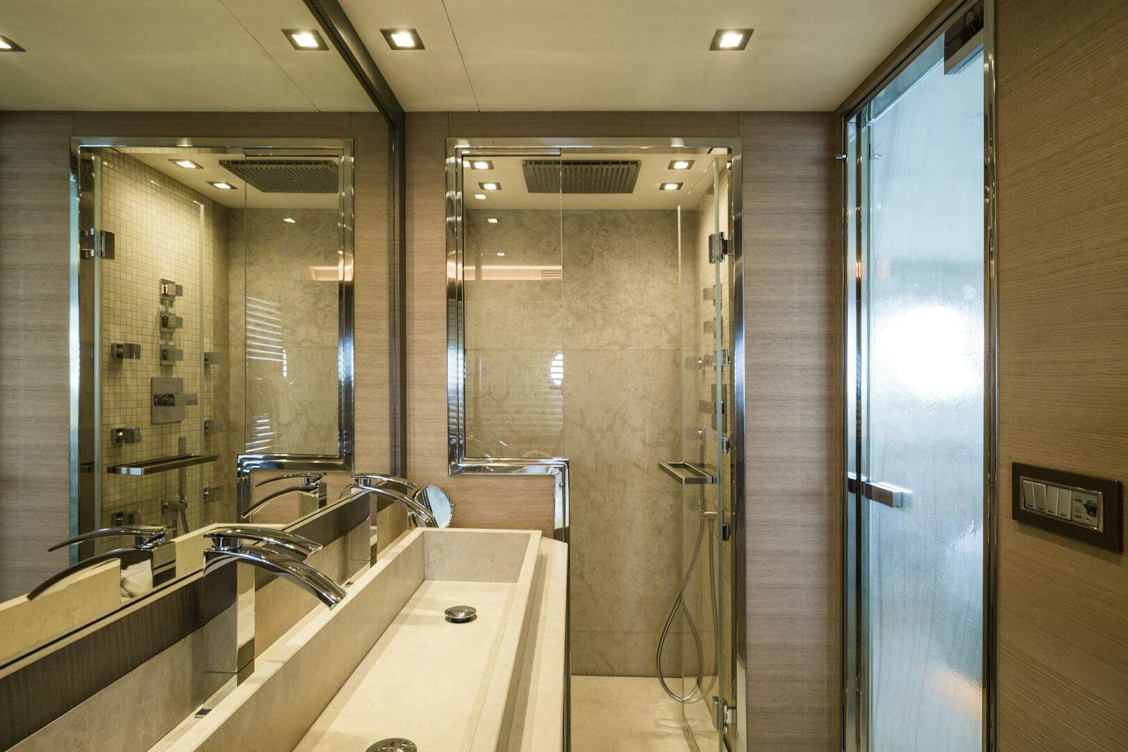 Below deck, eight guests can relax and rest in her four resplendent staterooms. The Master suite spotlights a large double bed, decorated in natural sunlight from its unconventional windows. Its occupants can enjoy a beautiful vanity desk, plush loveseat, walk-in closet and gorgeous en-suite bathroom for ultimate privacy. Down the corridor, the VIP cabin provides high luminosity over a lavish double bed, closet and en-suite bath. Her additional staterooms provide one twin cabin and a bunk bed cabin, each with their own private bathrooms.