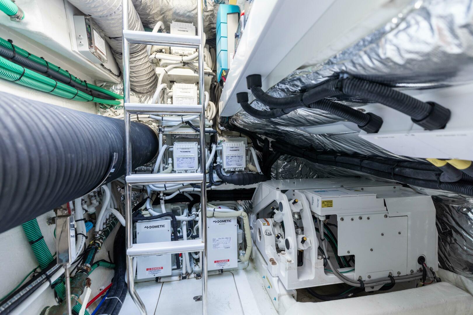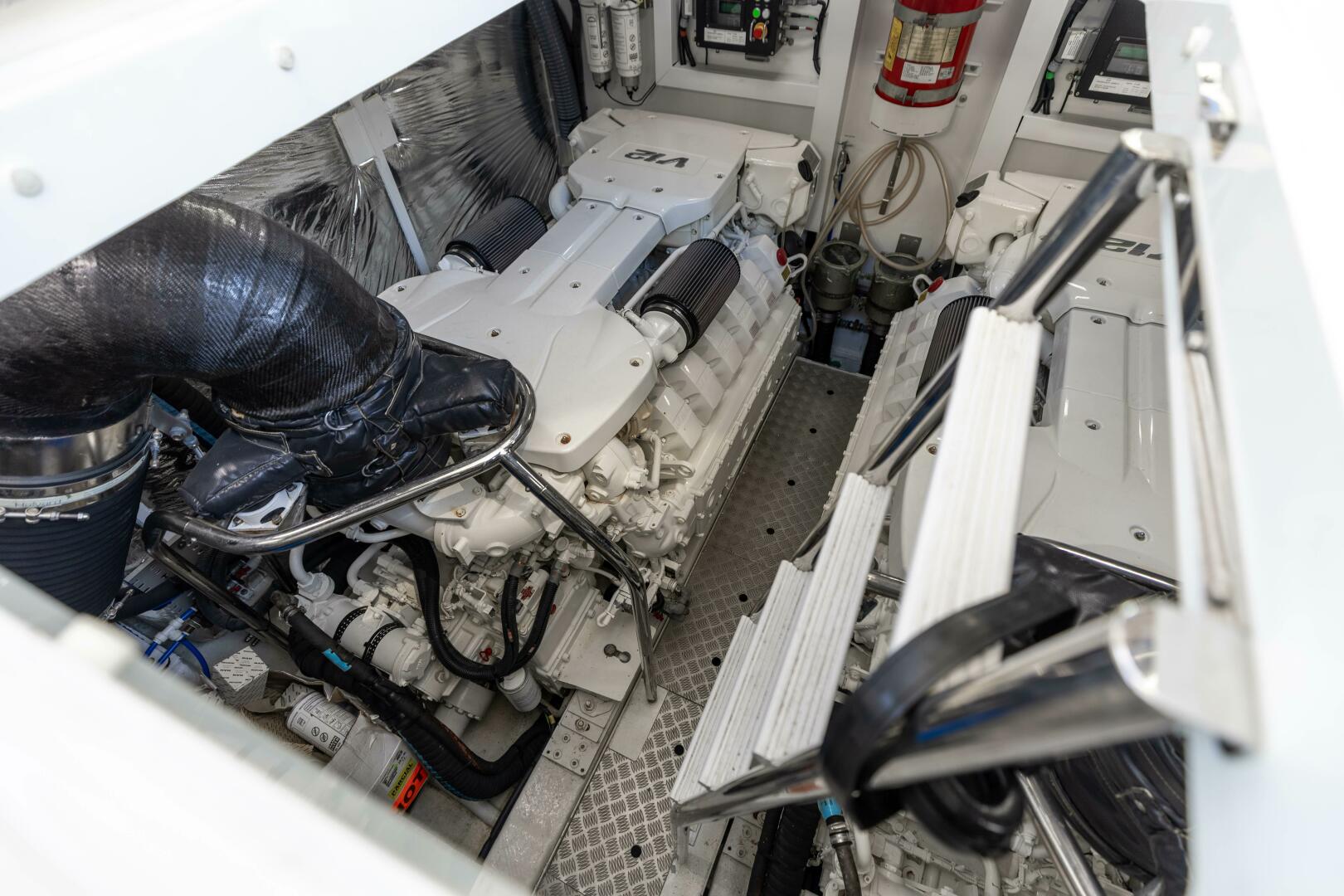 - Automatic/manual override fire extinguishers in the engine room with a warning system at both helm positions