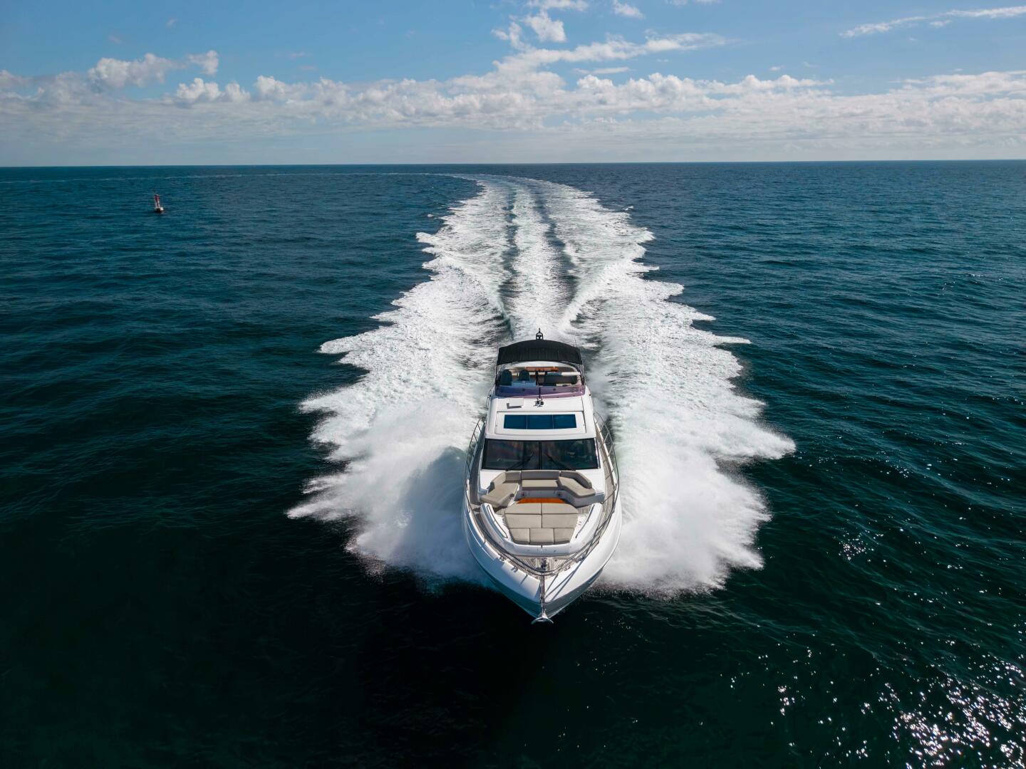 There's an undeniable presence about the Princess S65 Sportbridge with her slender streamlined form that somehow also exudes a predatory air. A Deep-V hull delivers on the promise with breathtaking agility up to 36 knots. When at anchor, peacefulness descends onto her generous well-appointed deck areas, which include a spacious foredeck seating area, the hydraulic bathing platform, and a tender garage to become the perfect base for water sports. Her spacious interior features a sociable galley and dining area aft which opens out to the cockpit, below deck eight guests are accommodated across four cabins, three of which are in-suites.