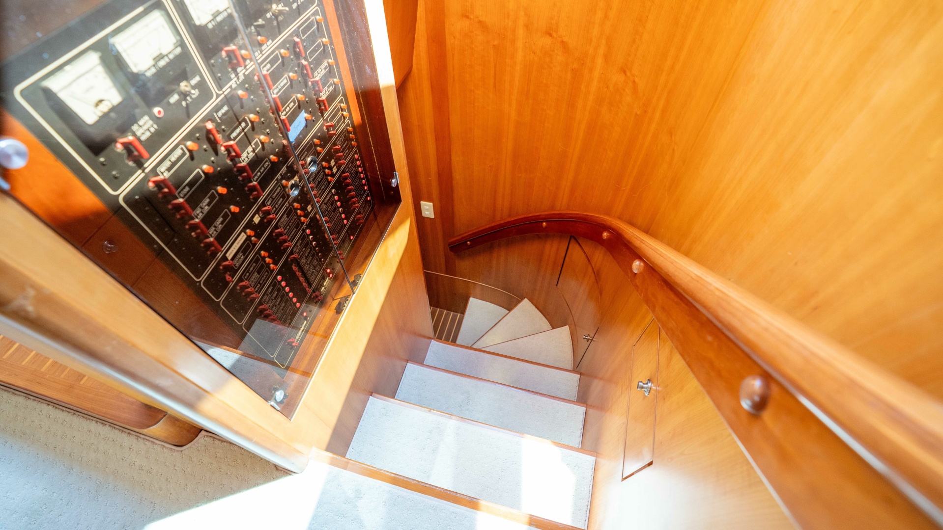 - Engine Room Access via Concealed Cockpit Door in Flybridge Staircase