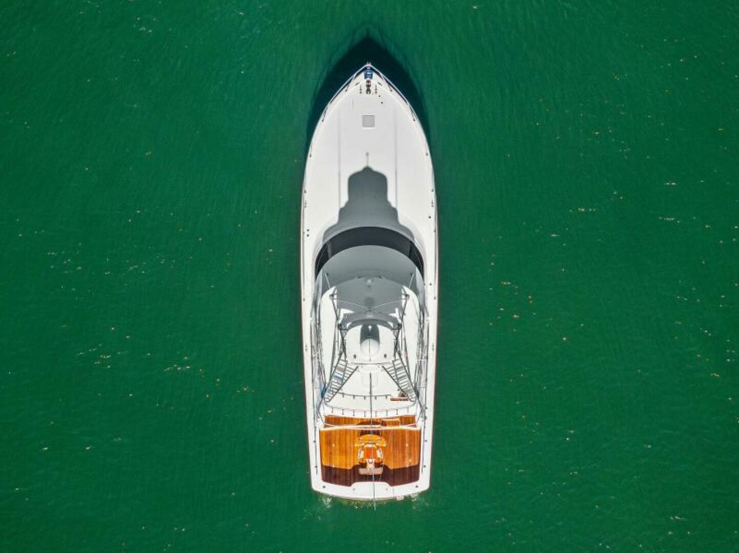 - Ladder to Flybridge, one-piece anodized aluminum w/ custom teak steps