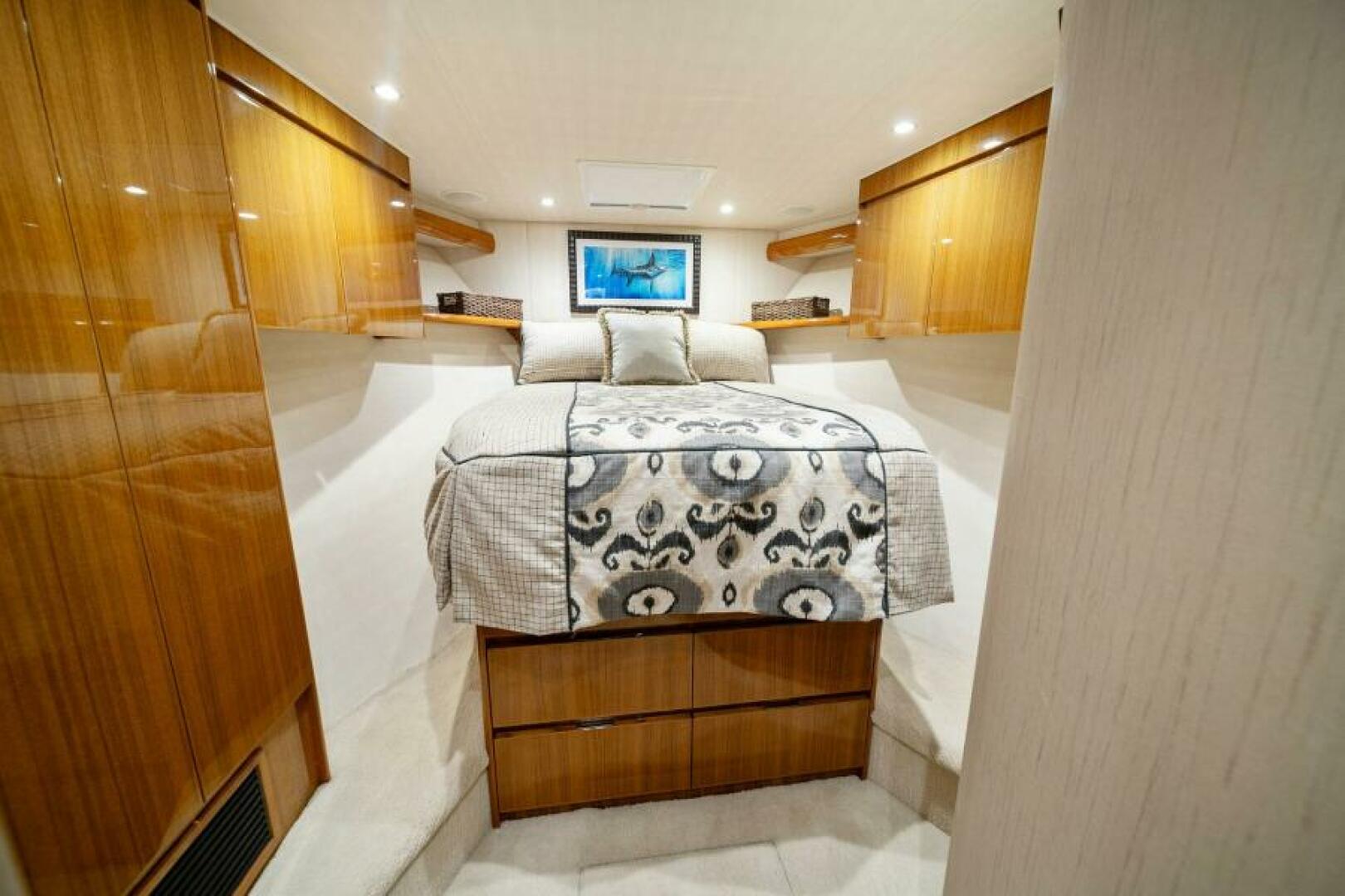- The Forward Stateroom has the island queen bed with lift-top storage and is accessed from the Companionway and also has it's own private access to the Guest Head.Island queen berth w/ custom Viking Slumber #6 mattress & lift-top storage