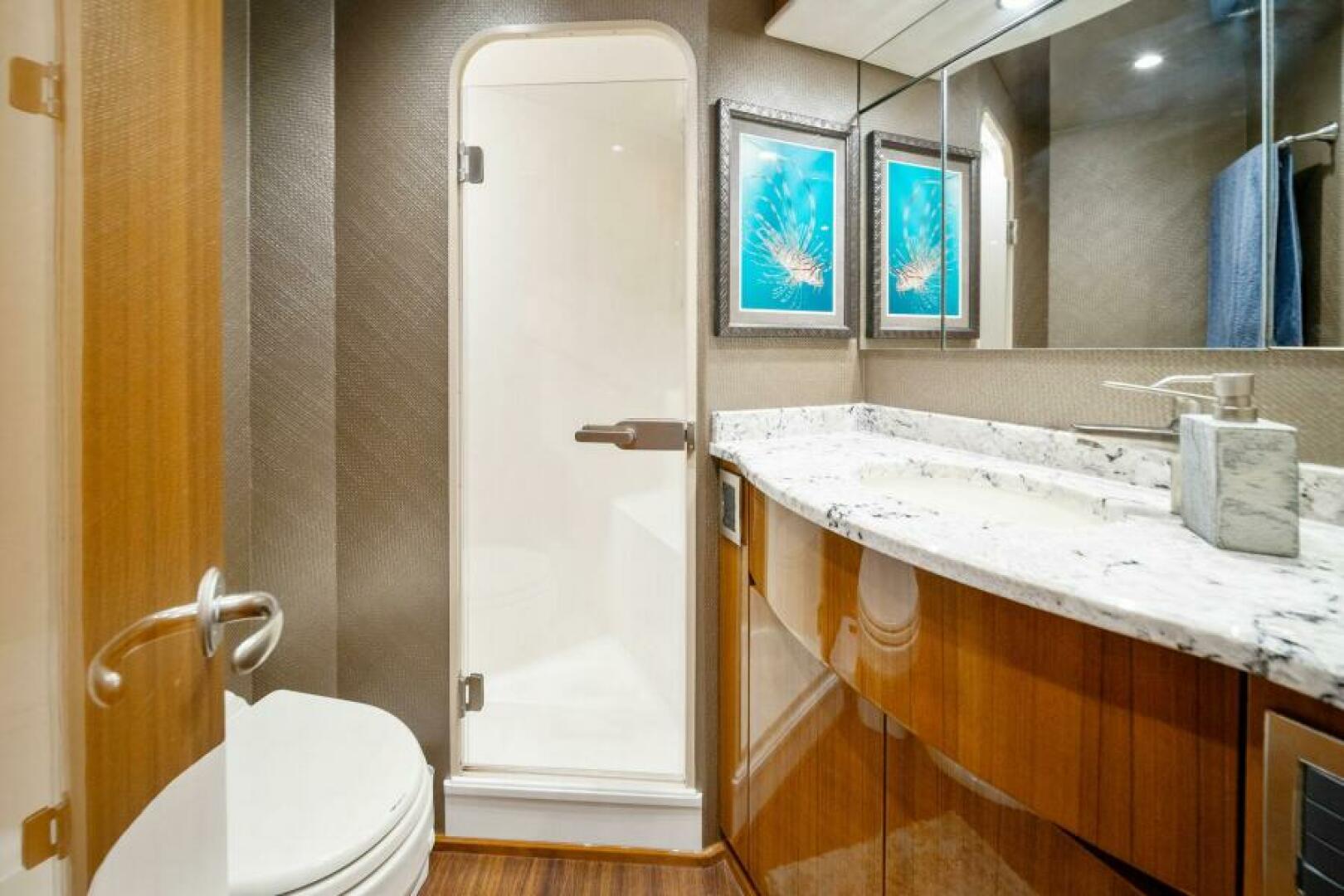 - The Master Head is spacious and is privately accessed from the Master Stateroom.Air conditioning / heat with vent in soffit