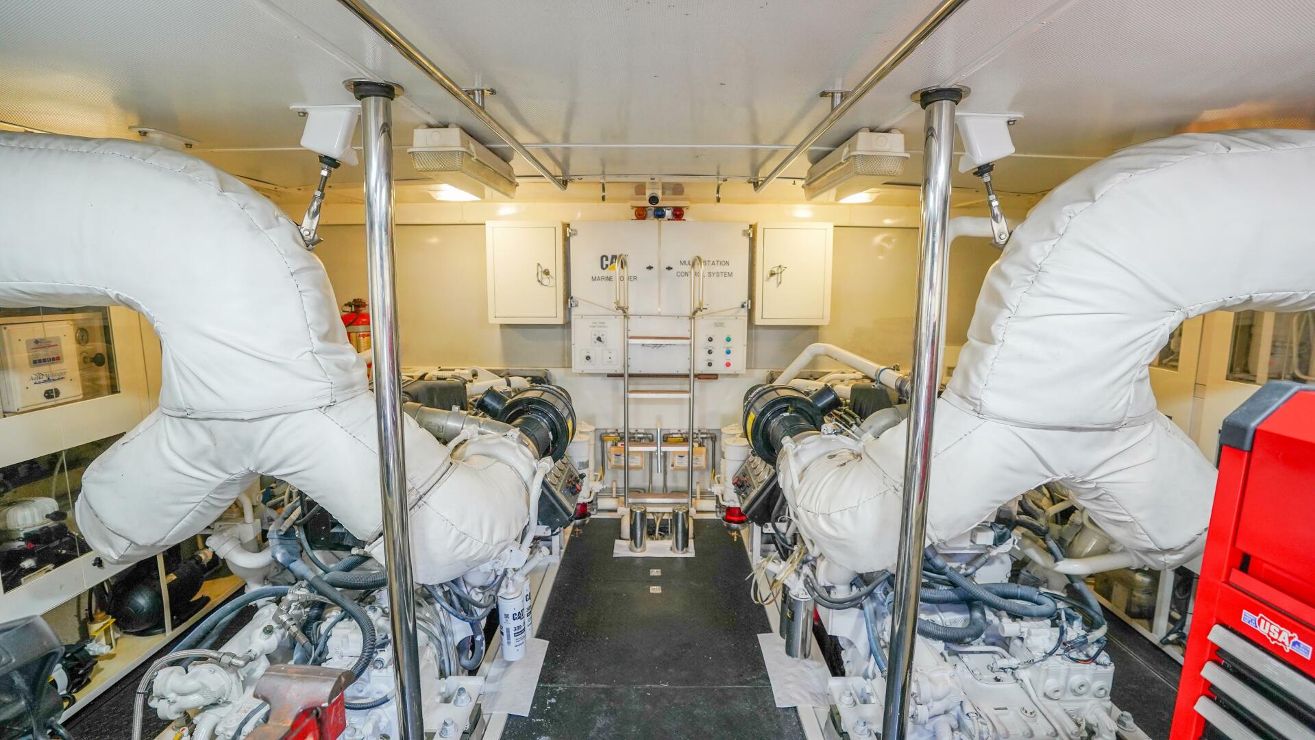 - 2024 (Starboard) - Engine oil and filter service completed; fuel filters replaced; cooling and raw-water system flushed; general Caterpillar inspection and preventative maintenance performed.