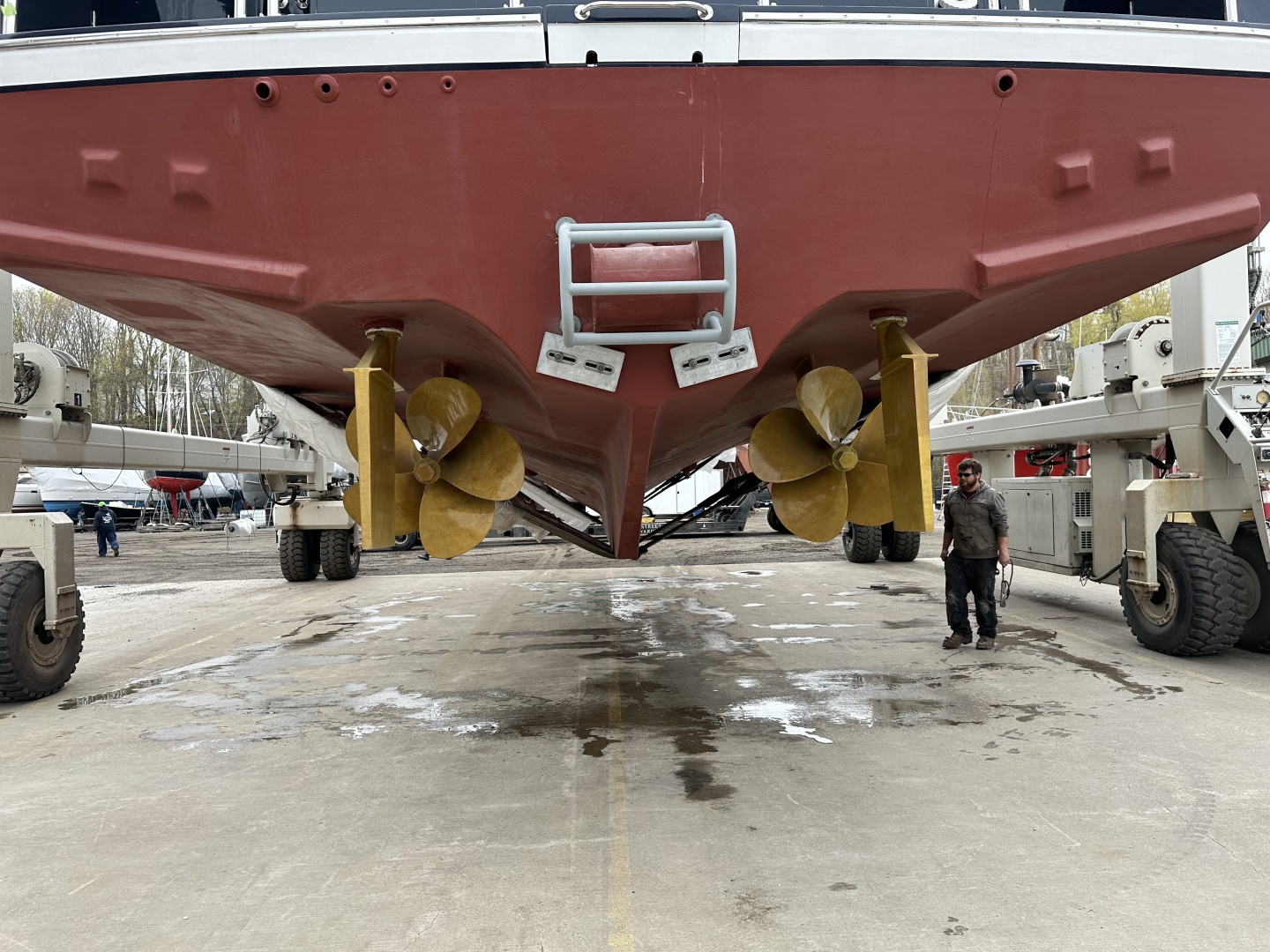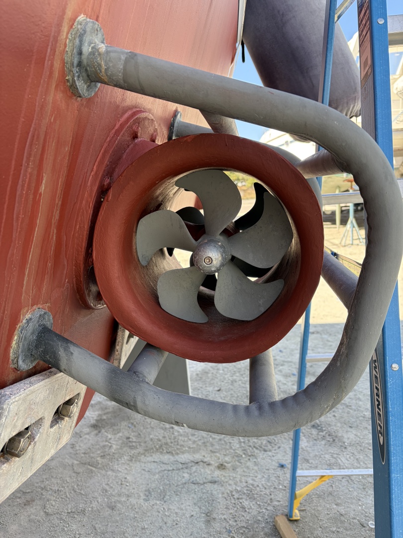 - Media blast and stripped bottom paint - recoat with 2 coats barrier coat and bottom paint