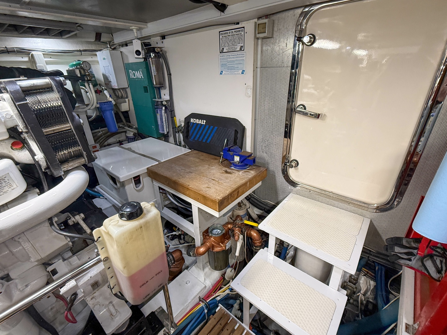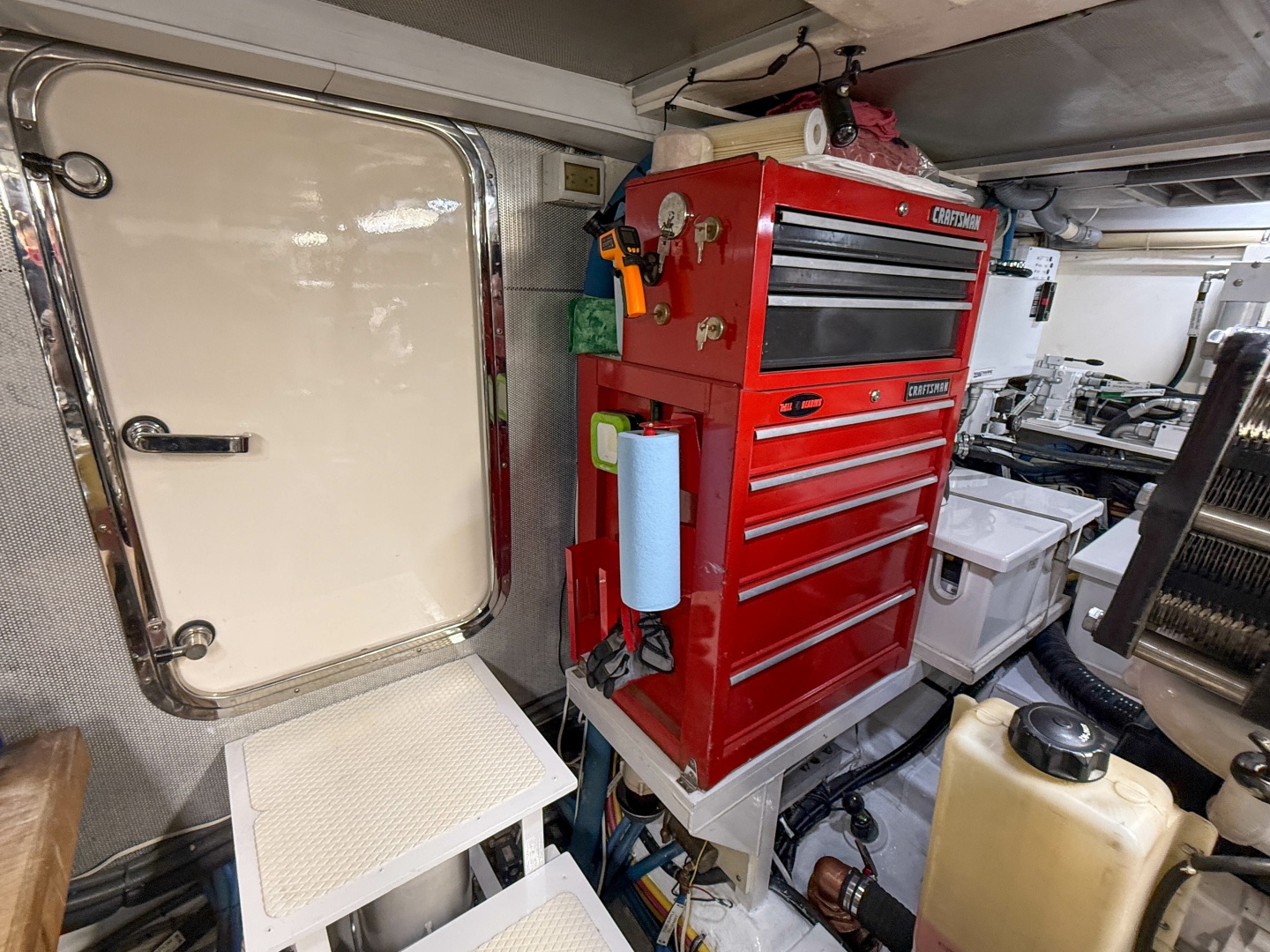- Shower has watertight hatch providing access to the engine room and lazarette laundry room