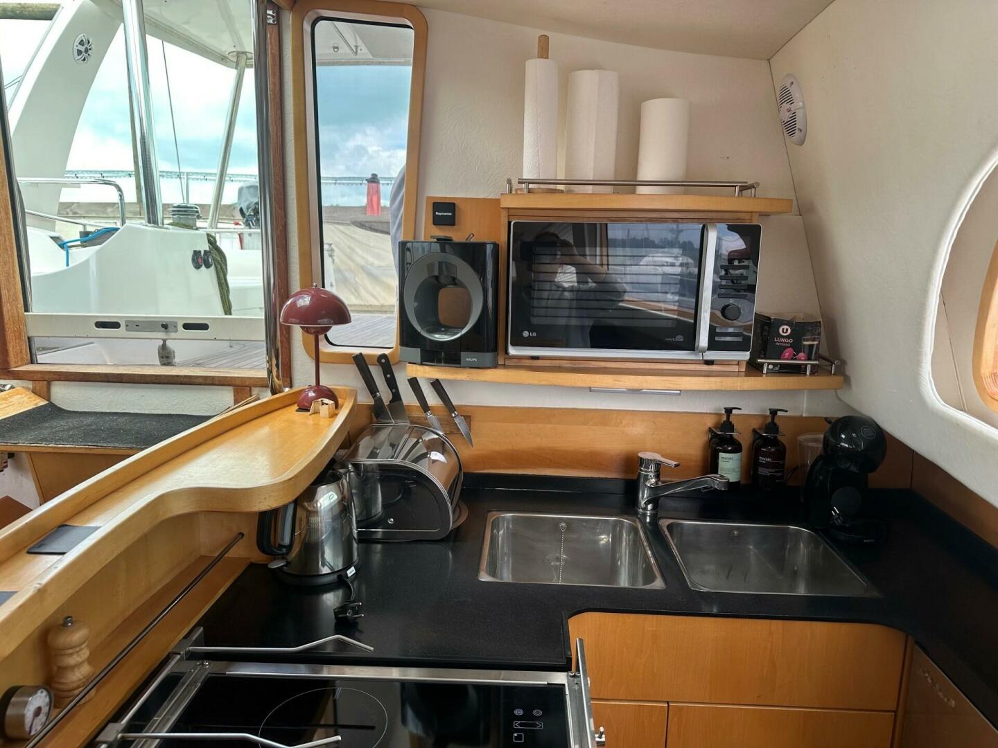 Air conditioning, Bow and Stern thrusters, Galley, Sail Drive, Solar panels, Water Maker
