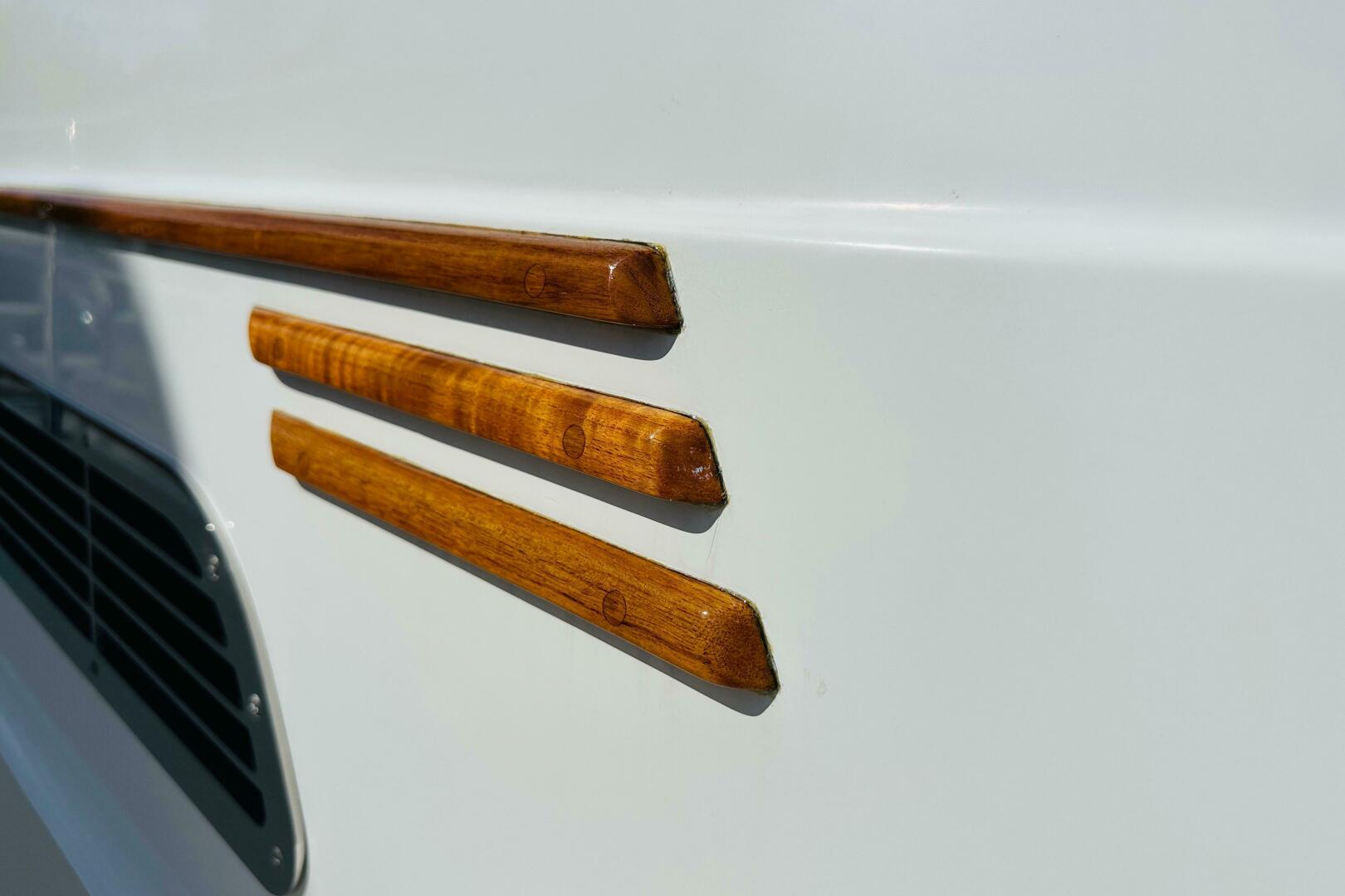 - All exterior varnish stripped to bare wood and redone with sealer and varnish