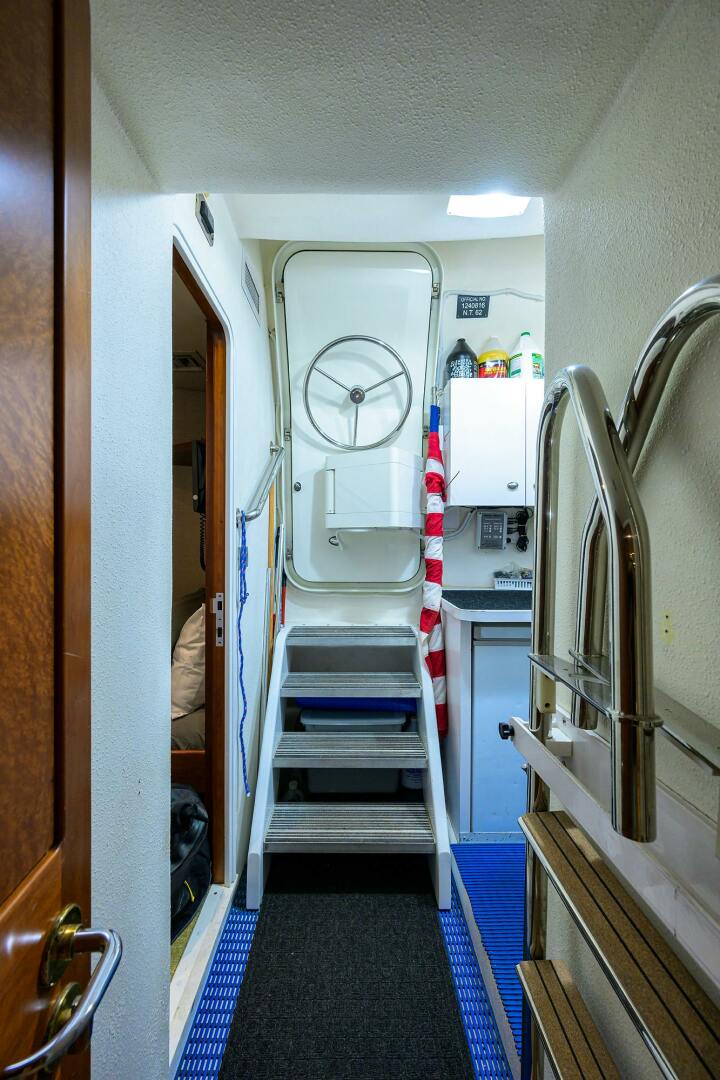 - Spiral staircases to Sundeck Crew Quarters