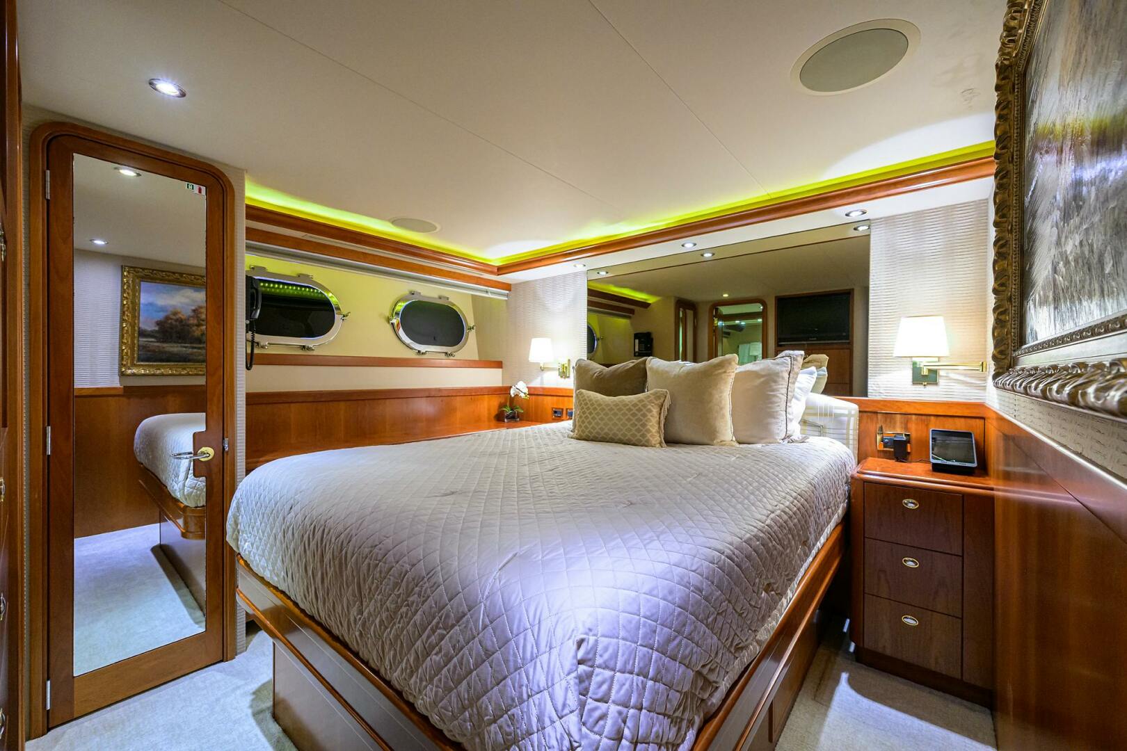 - California King berth, upholstered headboard