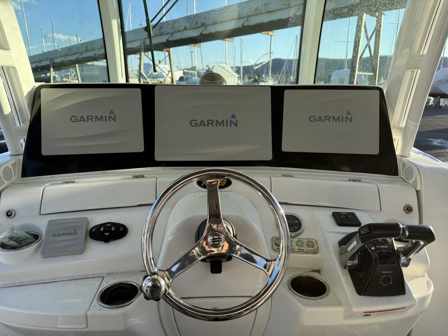 - Three Garmin chartplotters premium multi screen helm setup for advanced navigation, open array radar, sonar, and system integration from Garmin