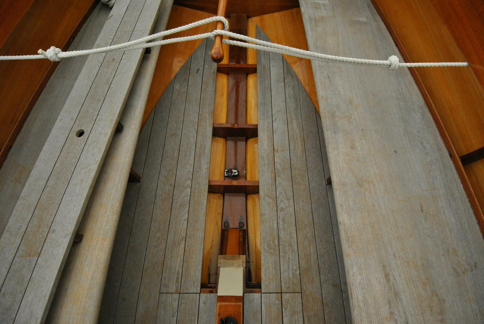 FILLY is a beautifully maintained example of the ultimate small daysailer. Designed by Joel and Steve White and built by the renowned Artisan Boatworks in Rockport, Maine, she encompasses pedigree, performance, and the finest traditions of Maine craftsmanship. With nearly 1,000 lbs. of lead ballast, a weighted centerboard, and a draft of just 22 inches with the board up (5′ 7″ down), FILLY delivers exceptional shallow-water versatility without sacrificing stability or performance. Her varnished wood finish, sculpted seating, and exquisite joinery make her as much a work of art as a capable sailing machine. Whether exploring coves, racing one-design, or simply appreciating the beauty of fine wooden construction under sail, the W-22 offers unmatched charm, performance, and enduring appeal for the classically minded modern sailor.