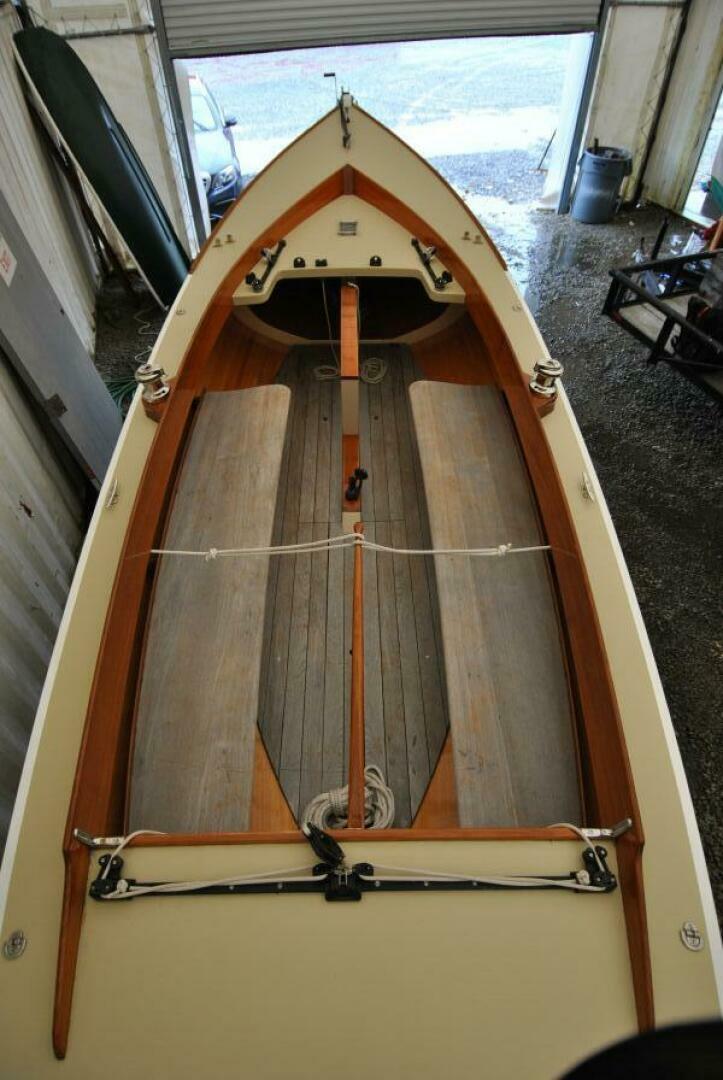 FILLY is a beautifully maintained W-22 “Spirit of Tradition” daysailer, designed by Joel and Steve White and built by Artisan Boatworks in Rockport, Maine. This classic wooden sailboat features a cold-molded hull, varnished finish, weighted centerboard, and shallow 22-inch draft, offering exceptional stability and shallow-water versatility. Fully equipped for day sailing and one-design racing, FILLY includes North sails, stainless winches, USCG safety gear, and a custom 2015 Triad galvanized trailer. Lightly used and seasonally sailed in Newport, RI, she is roadworthy and ready for immediate use, making her one of the finest classic small daysailers available.