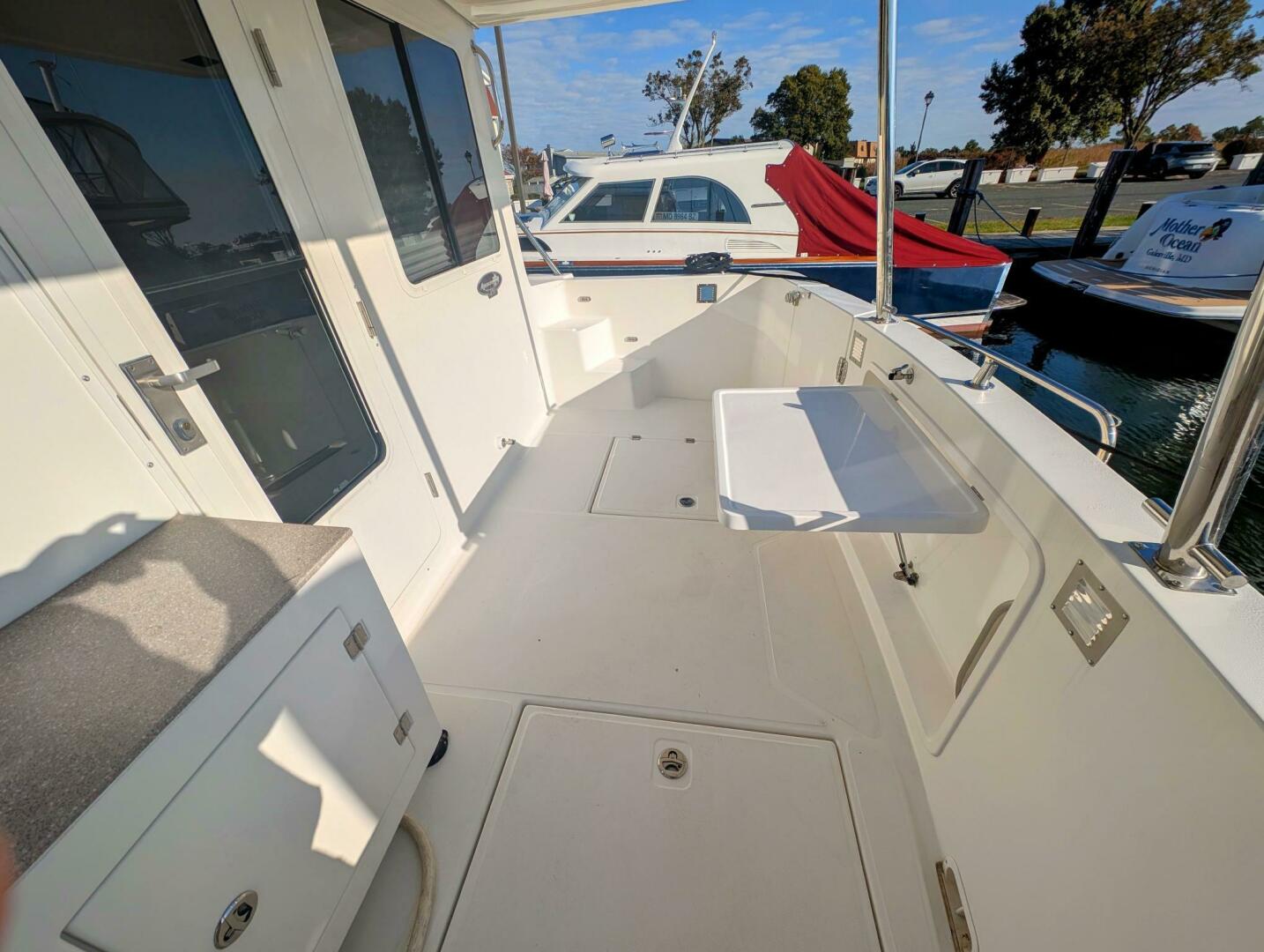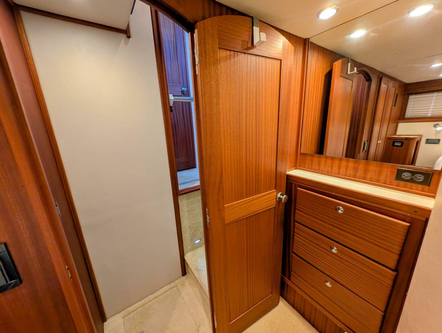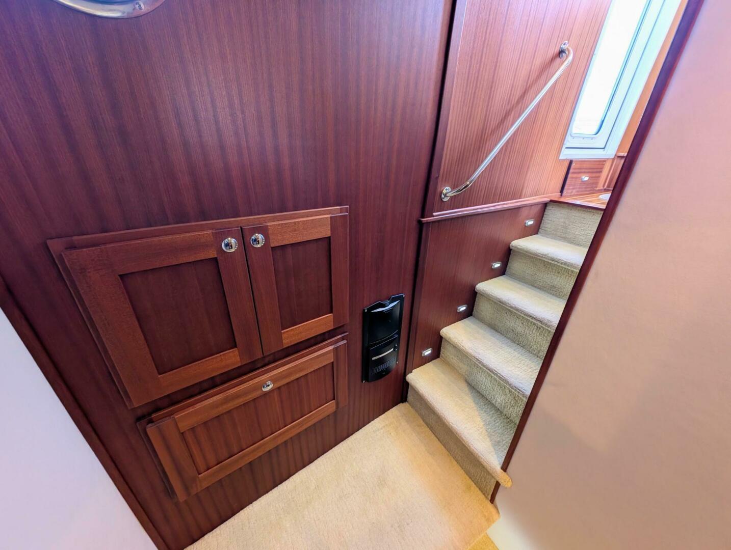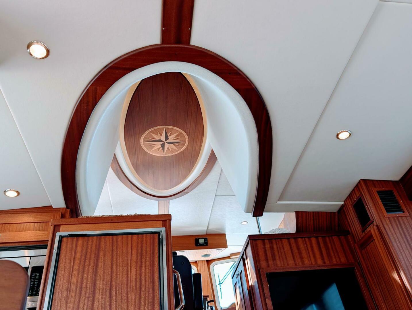 - Raised Pilothouse: A key feature, offering excellent sight lines, a helm seat on centerline, and a large settee to port (which can double as a watch berth). It includes port and starboard access doors and access to the flybridge/boat deck.