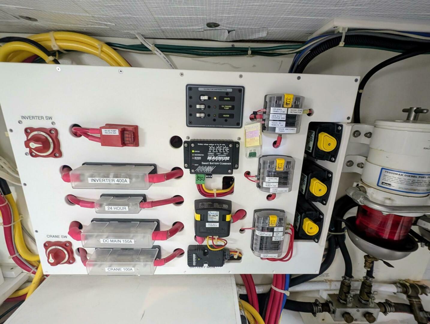 - Other Features: "Firefly" includes a dedicated upper deck with a 800# davit and "chocks" for a tender, a Northern Lights 9kW generator with 469 hours, an inverter/charger, and extensive storage.