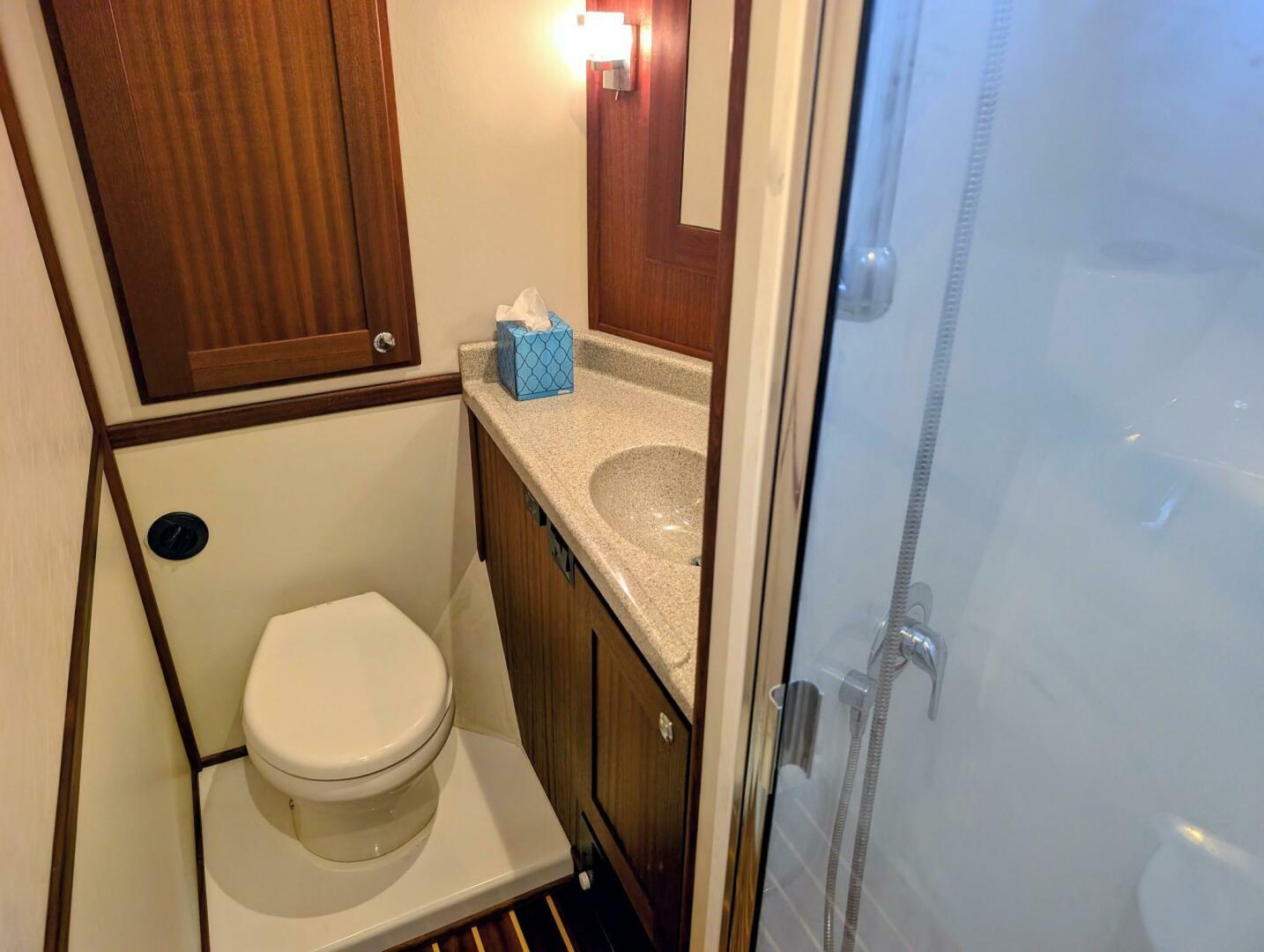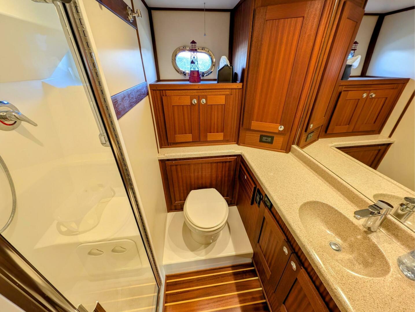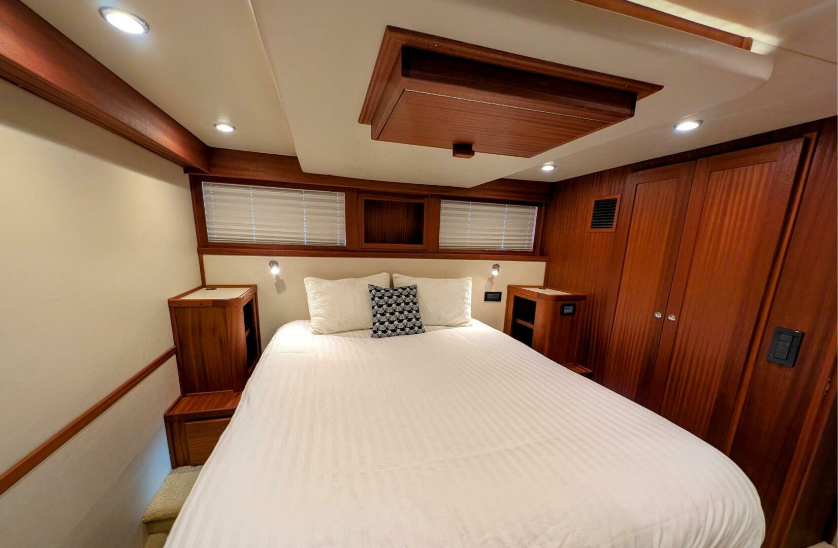 - Master Stateroom: Located amidships and utilizes the full beam, featuring a walkaround queen berth and an ensuite head with a separate shower stall.