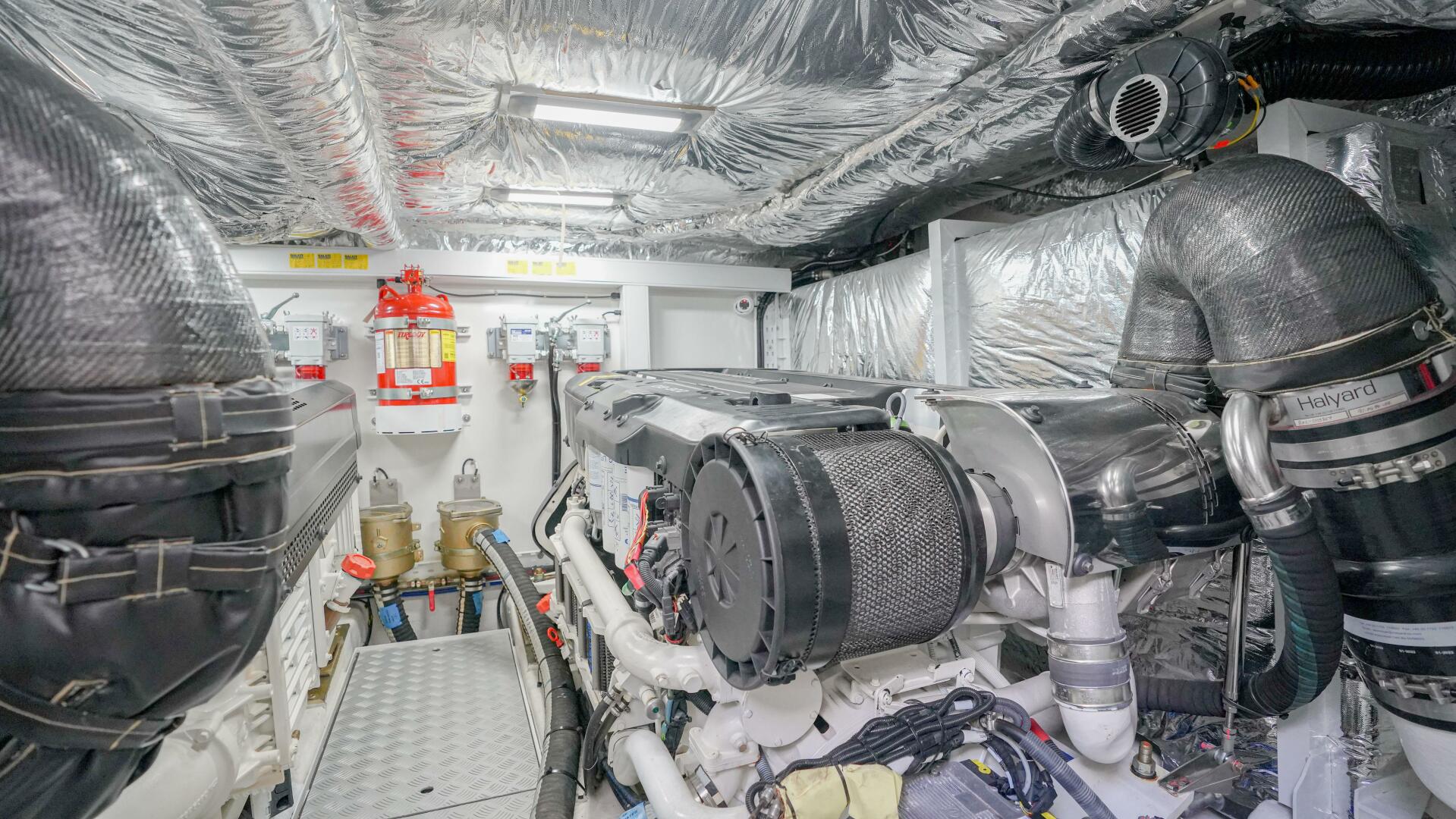- Lockable gas strut assisted hatch to engine room, lazarette and optional crew cabin