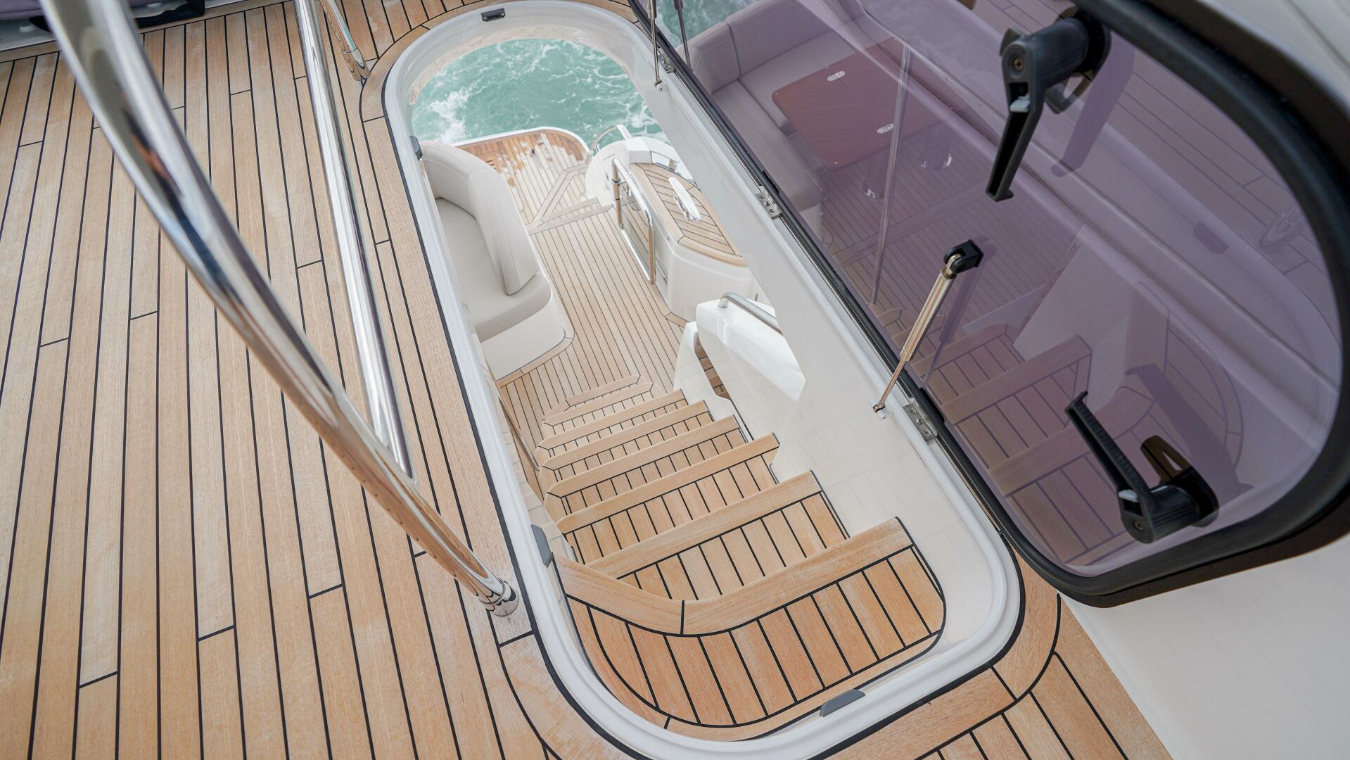 - Reticulated foam to all standard exterior cockpit, foredeck and flybridge seating/sunpads