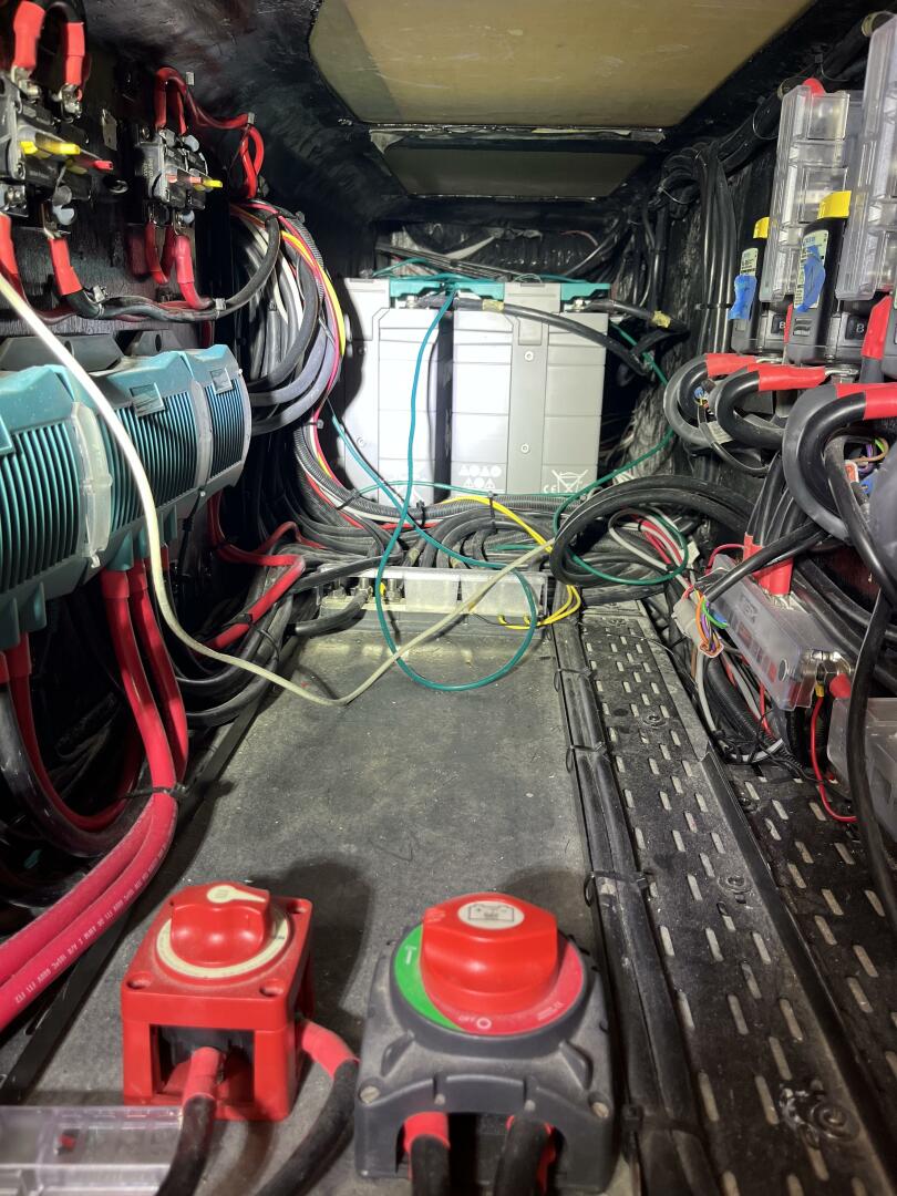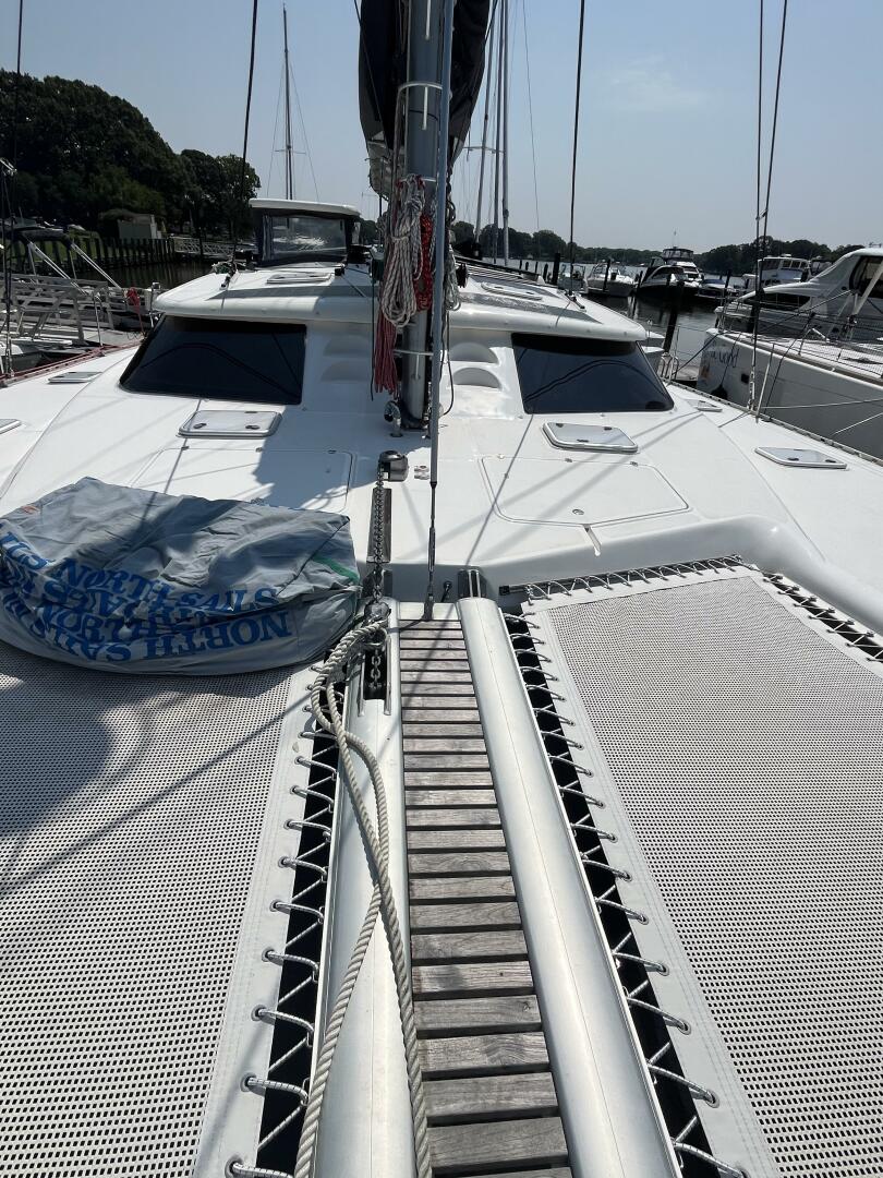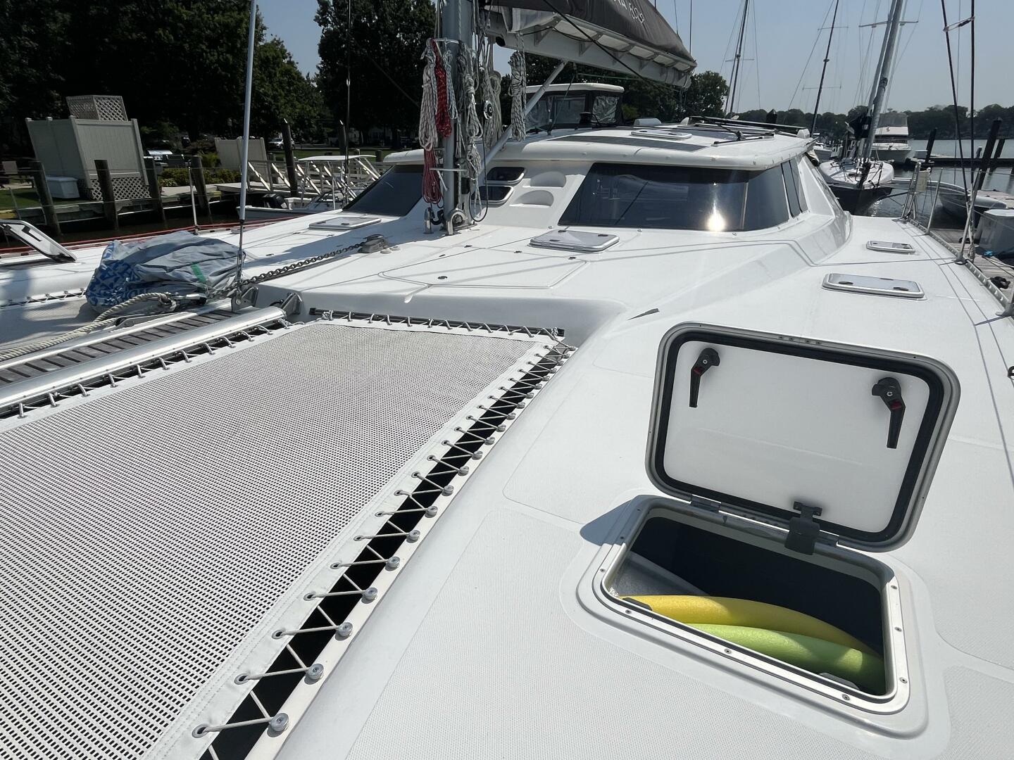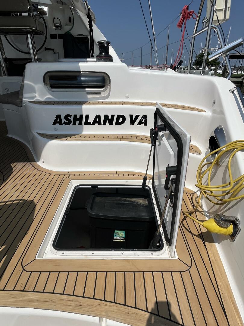- Foredeck storage lockers w/ diesel tank (port) & freshwater tank/propane tanks (starboard)