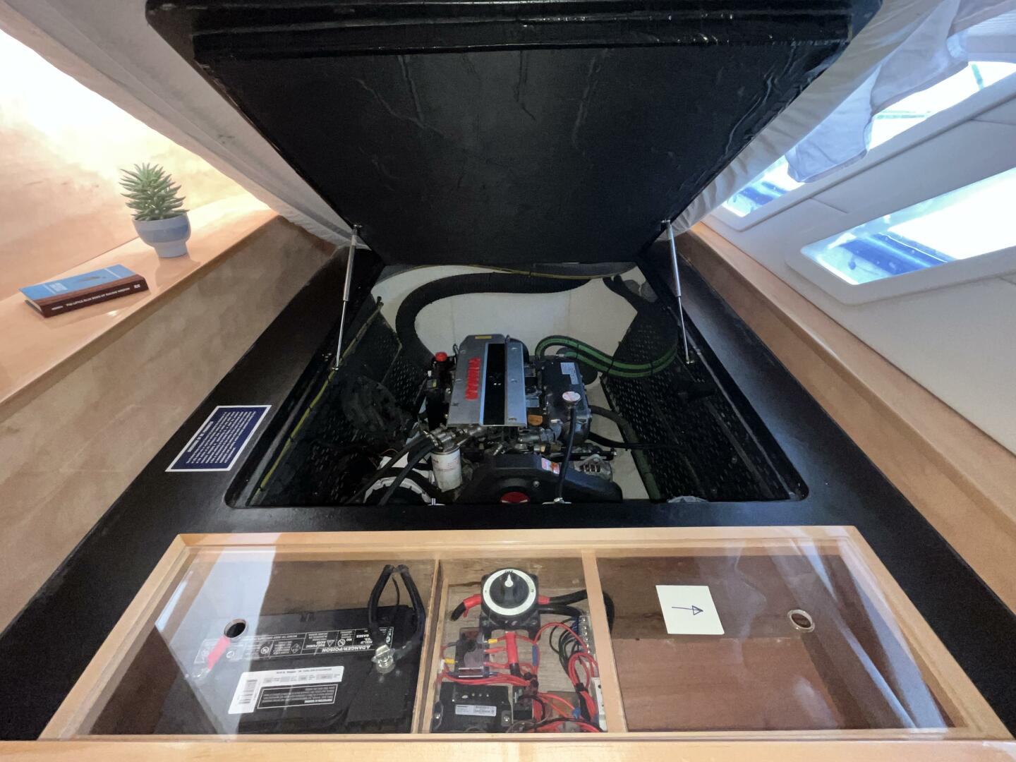 - Engine, start battery, battery switch access beneath bunk – mattress lifts on hydraulic strut