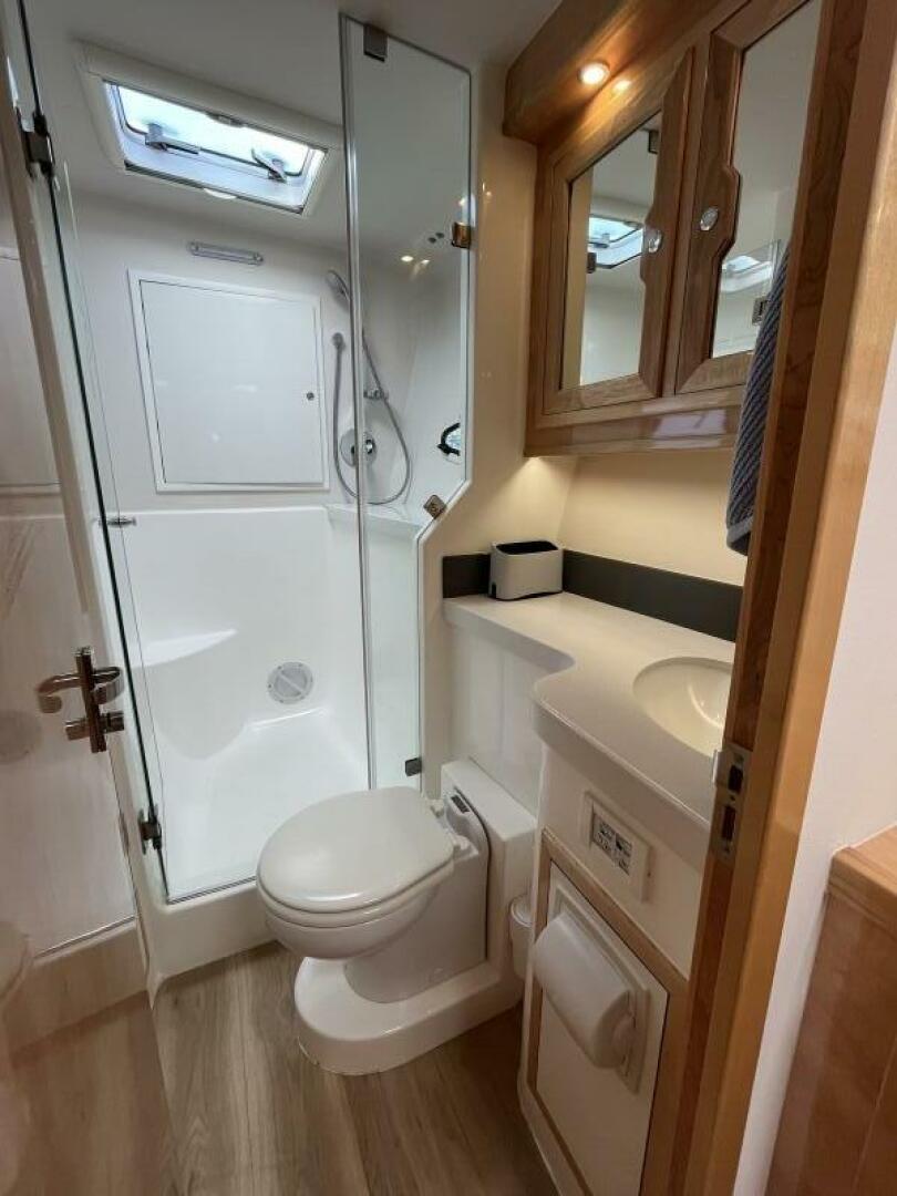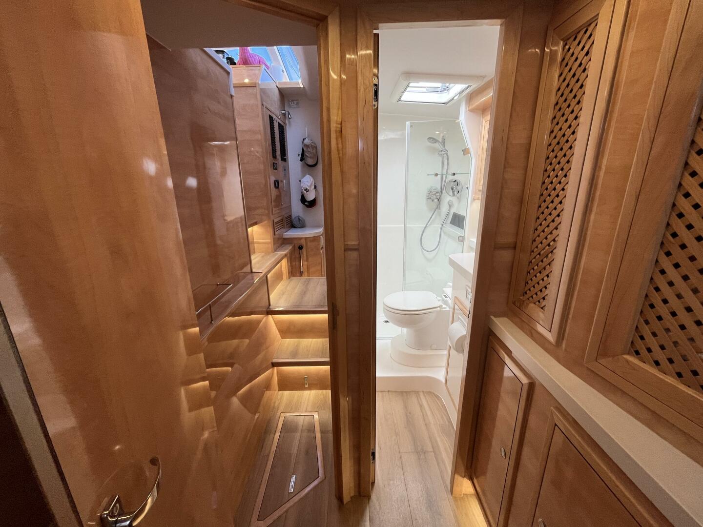 - Access door to aft head w/ fresh water flush, electric head, basin & vanity