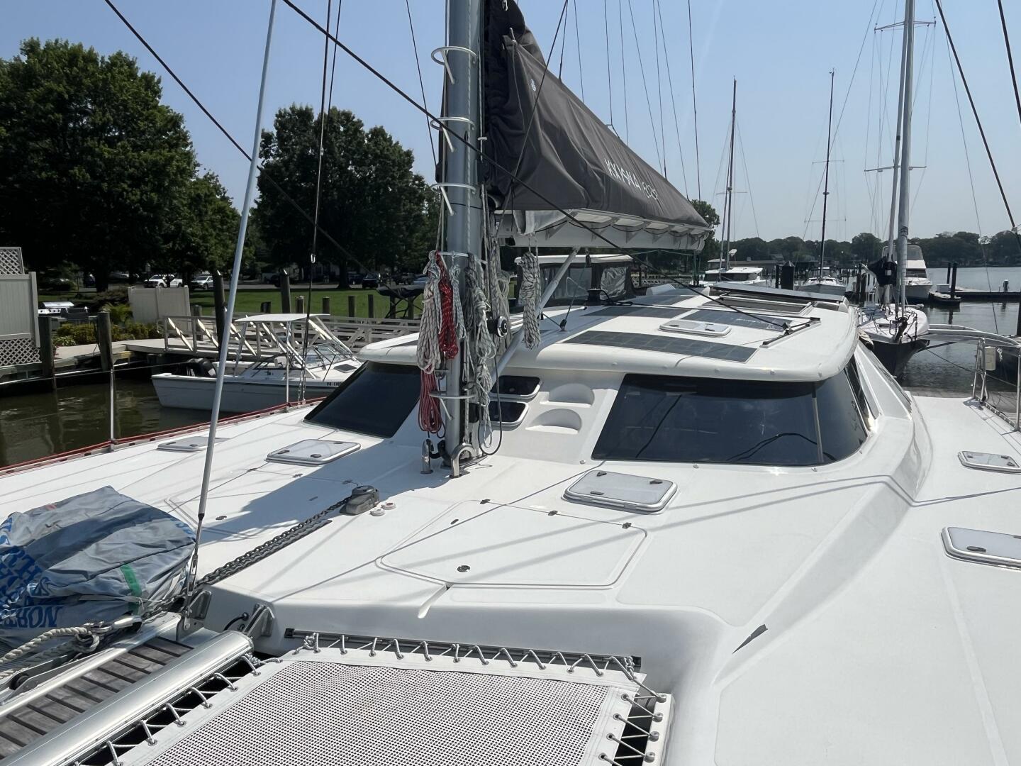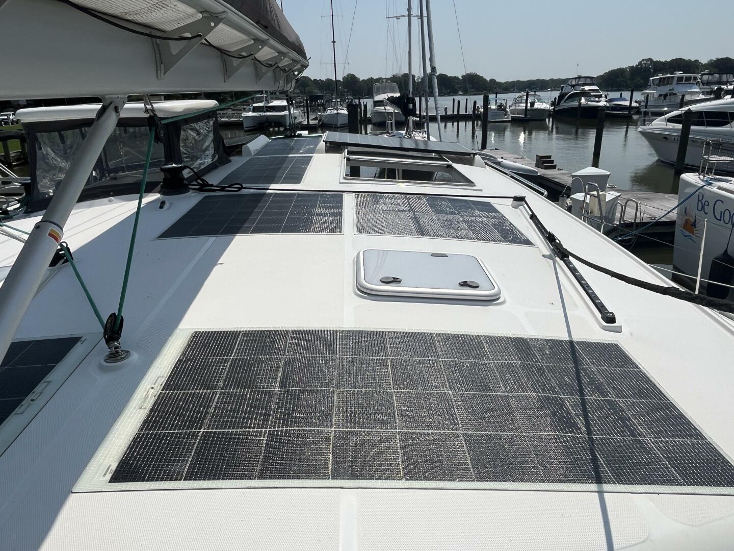- Solar panels on cabin top and bimini