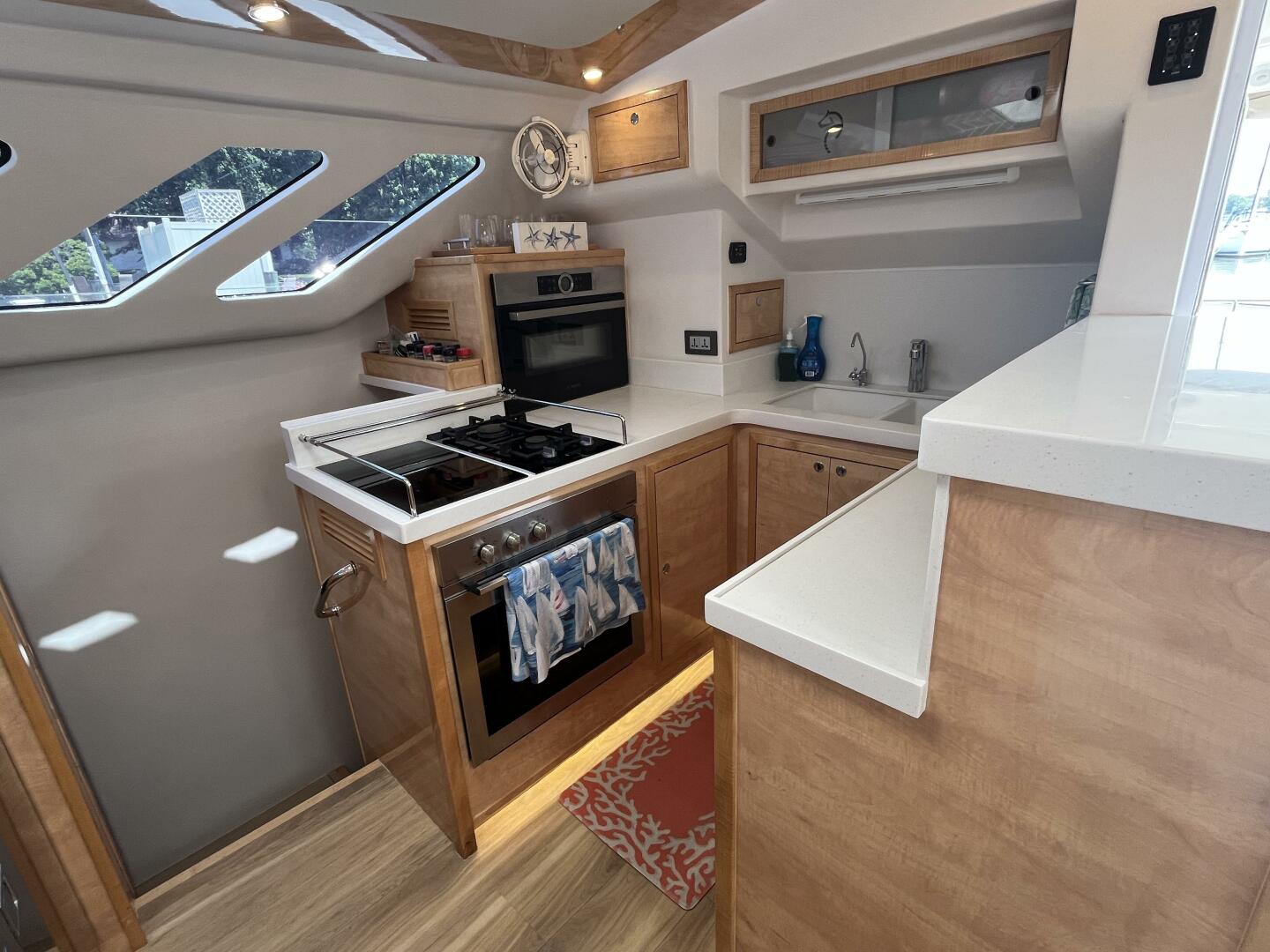 - U-shaped galley w/ Corian countertops extensive work surface & storage space