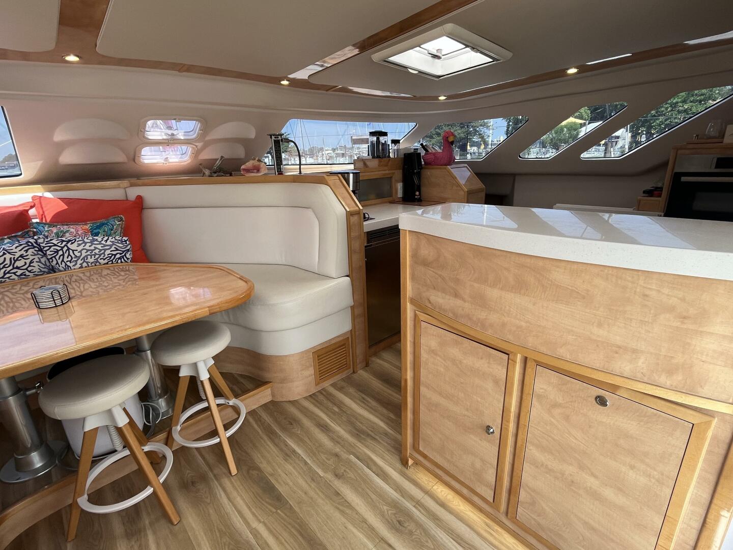 - Extensive storage in overhead & hull-side lockers